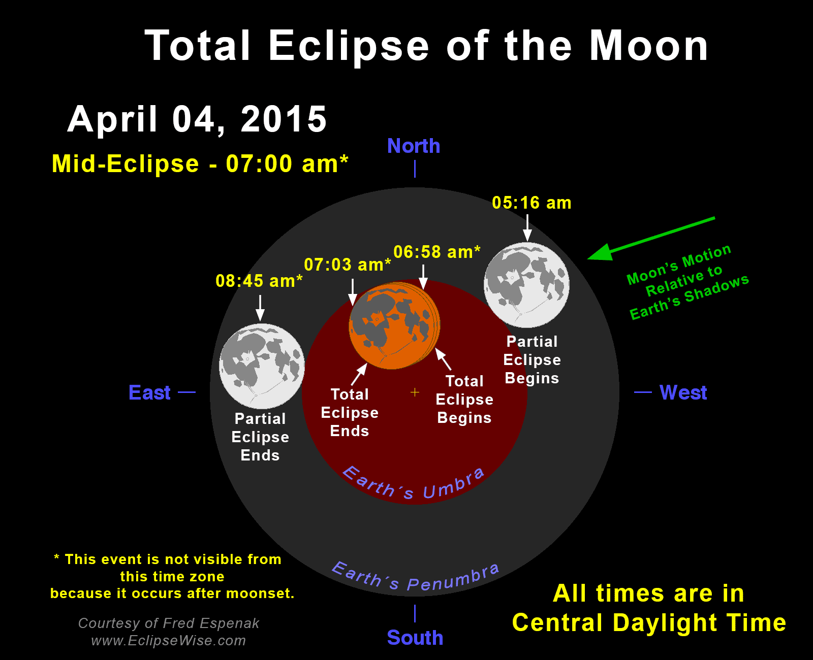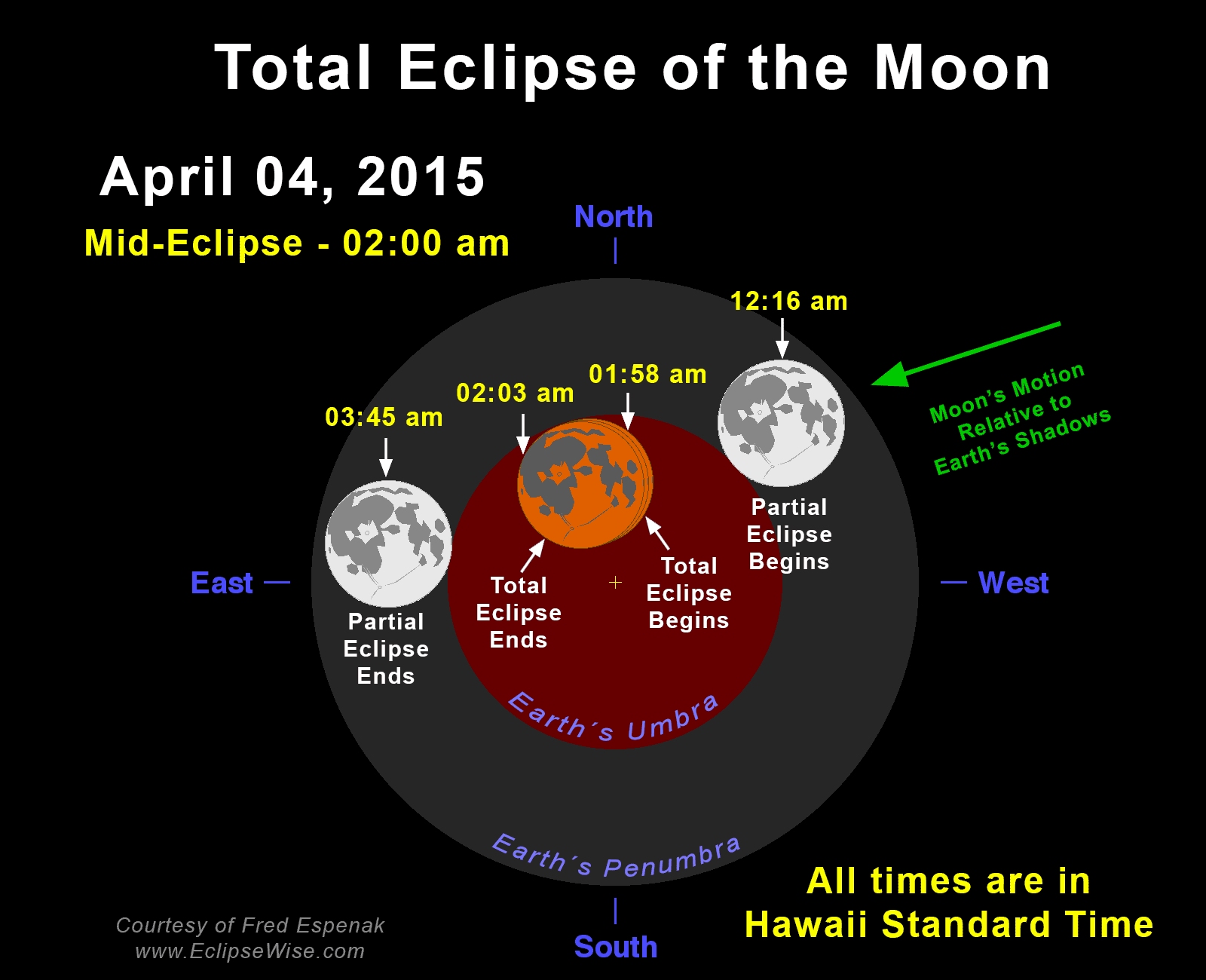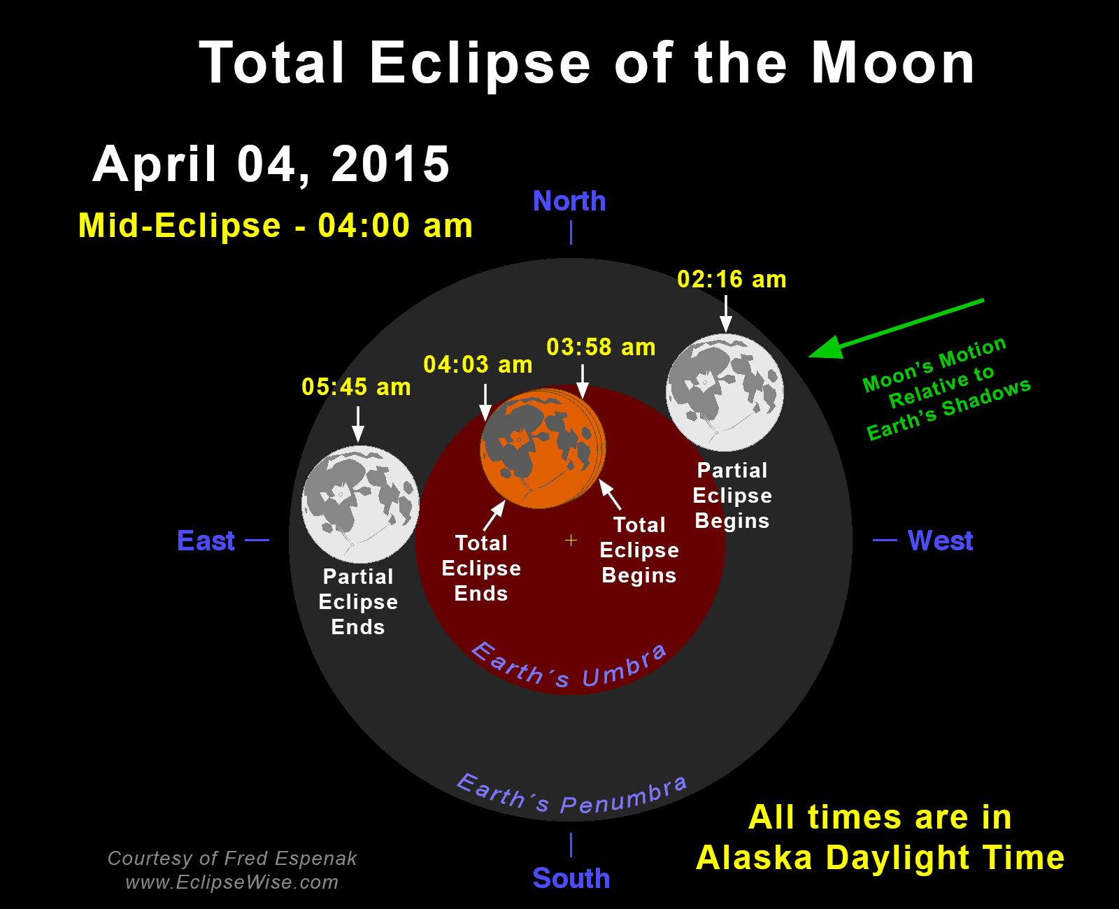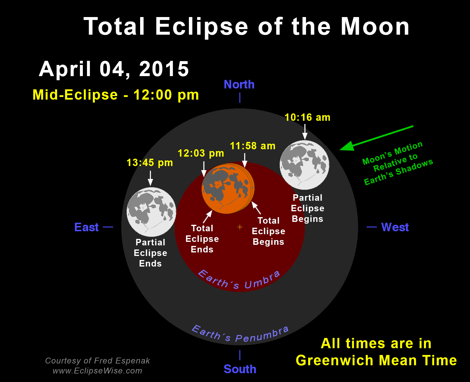 The diagrams above of the Total Lunar Eclipse of April 4, 2015 by Fred Espenak, www.EclipseWise.com are licensed under a Creative Commons Attribution-NonCommercial-NoDerivs 3.0 Unported License.
