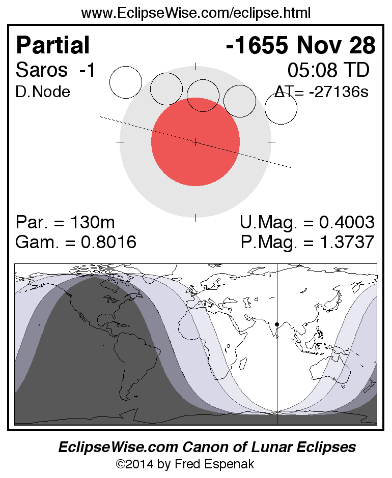 The instant of greatest eclipse takes place on -1655 Nov 28 at 05:08:14 TD (18:28:19 UT1).
