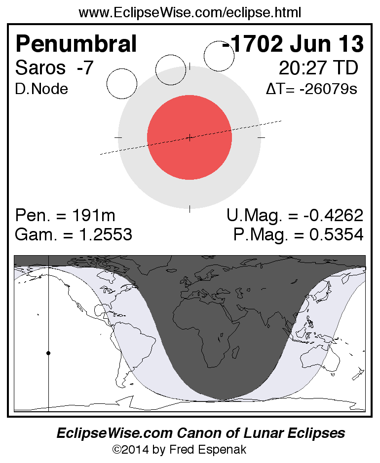 Penumbral Lunar Eclipse of -1702 Jun 13