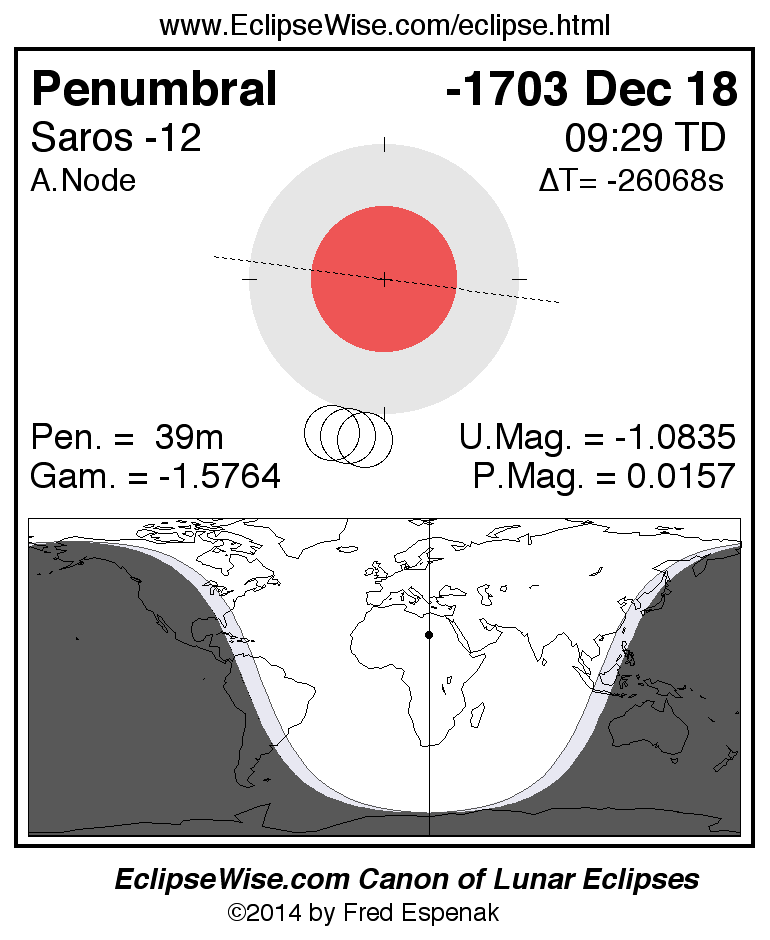 The instant of greatest eclipse takes place on -1703 Dec 18 at 09:28:51 TD (22:31:08 UT1).