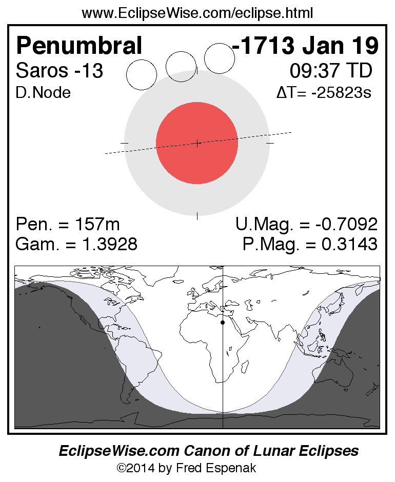 Penumbral Lunar Eclipse of -1713 Jan 19