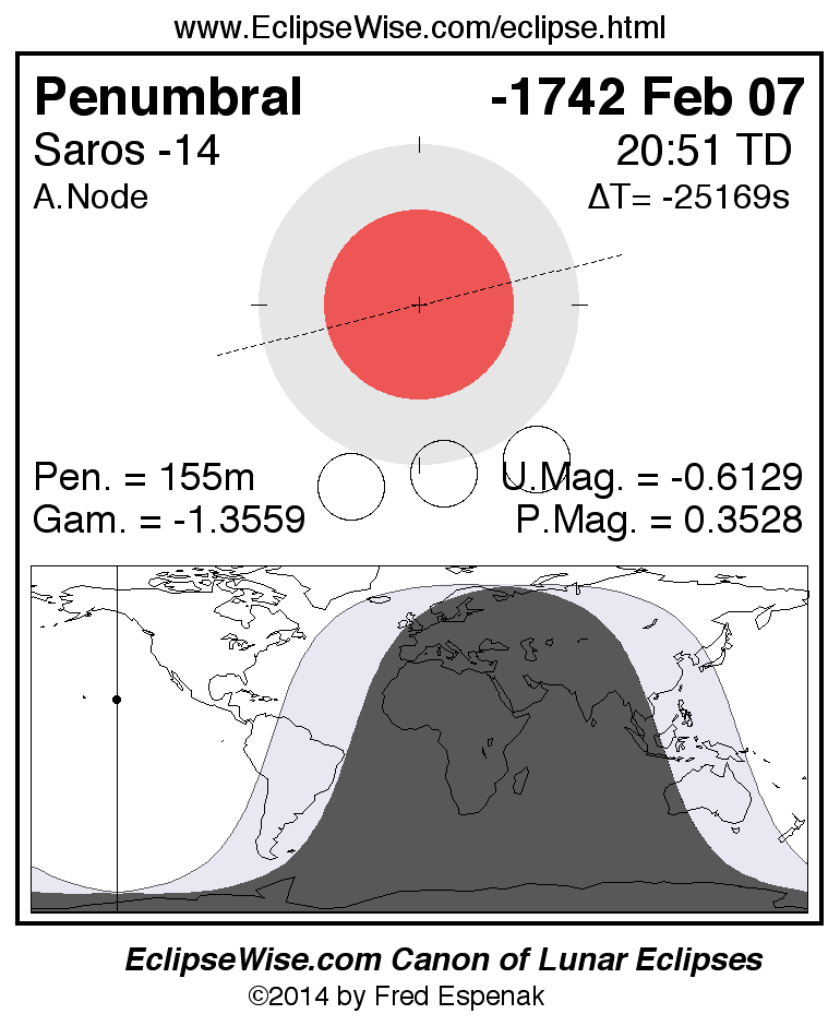 The instant of greatest eclipse takes place on -1742 Feb 07 at 20:51:02 TD (09:38:19 UT1).
