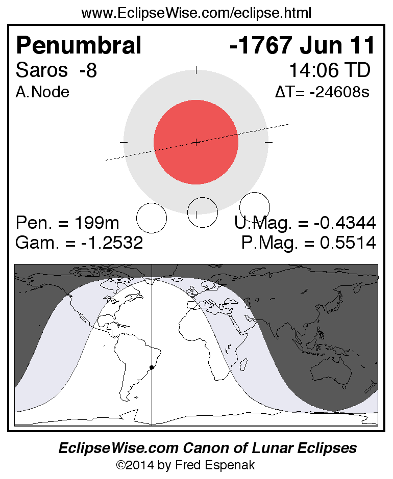 Penumbral Lunar Eclipse of -1767 Jun 11