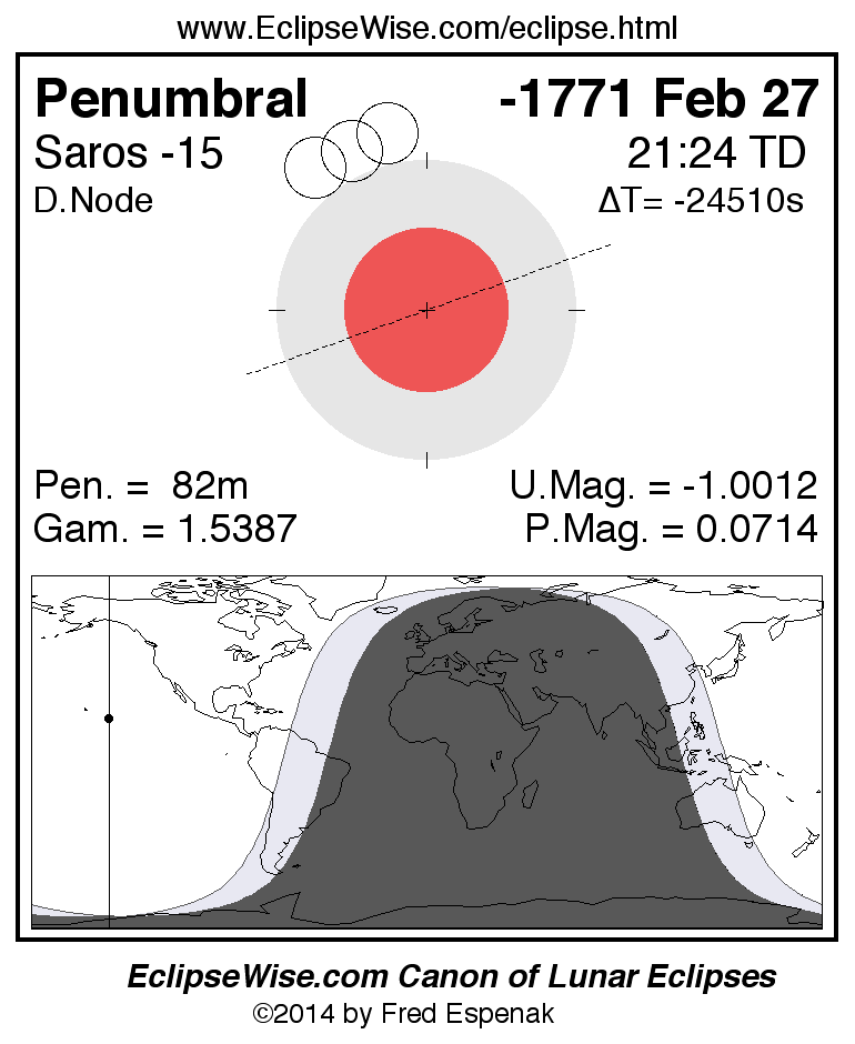 The penumbral lunar eclipse of -1771 Feb 27 is followed two weeks later by a total solar eclipse on -1771 Mar 14.
