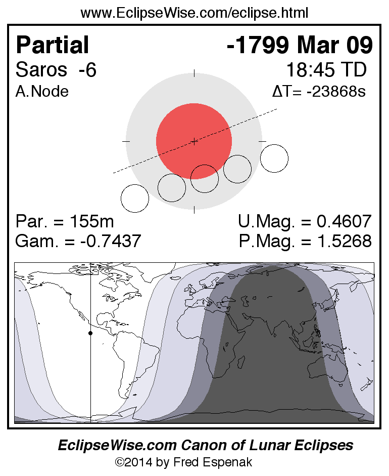 The instant of greatest eclipse takes place on -1799 Mar 09 at 18:45:29 TD (07:11:06 UT1).