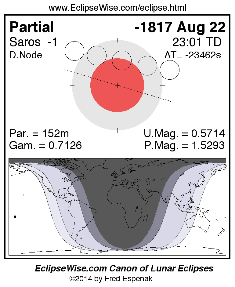 The instant of greatest eclipse takes place on -1817 Aug 22 at 23:00:56 TD (11:19:48 UT1).