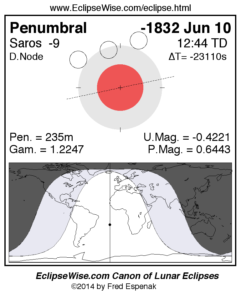 Penumbral Lunar Eclipse of -1832 Jun 10