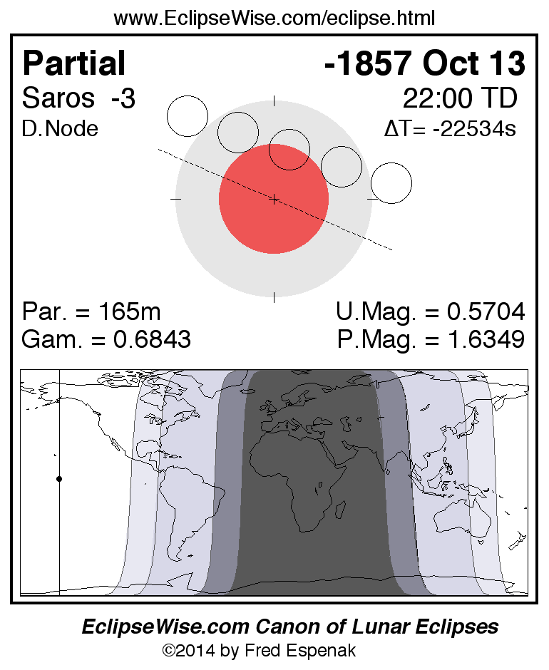 The instant of greatest eclipse takes place on -1857 Oct 13 at 22:00:20 TD (10:03:44 UT1).