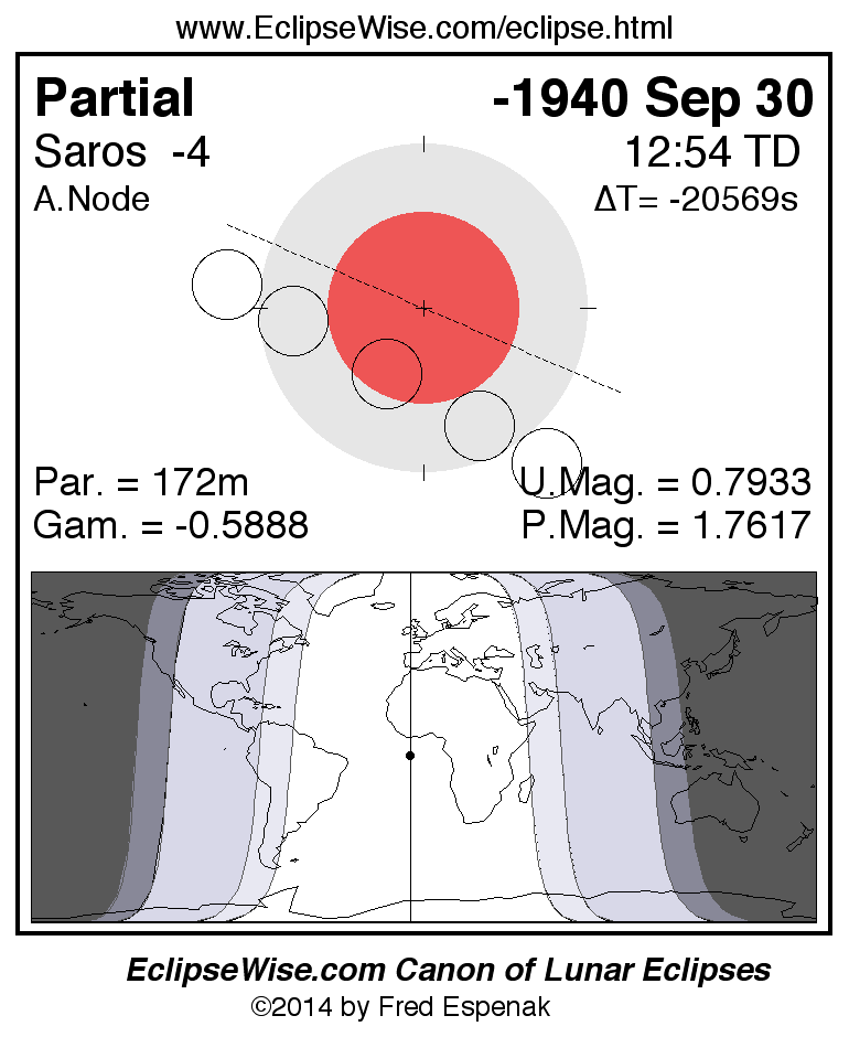 The instant of greatest eclipse takes place on -1940 Sep 30 at 12:54:13 TD (00:24:51 UT1).