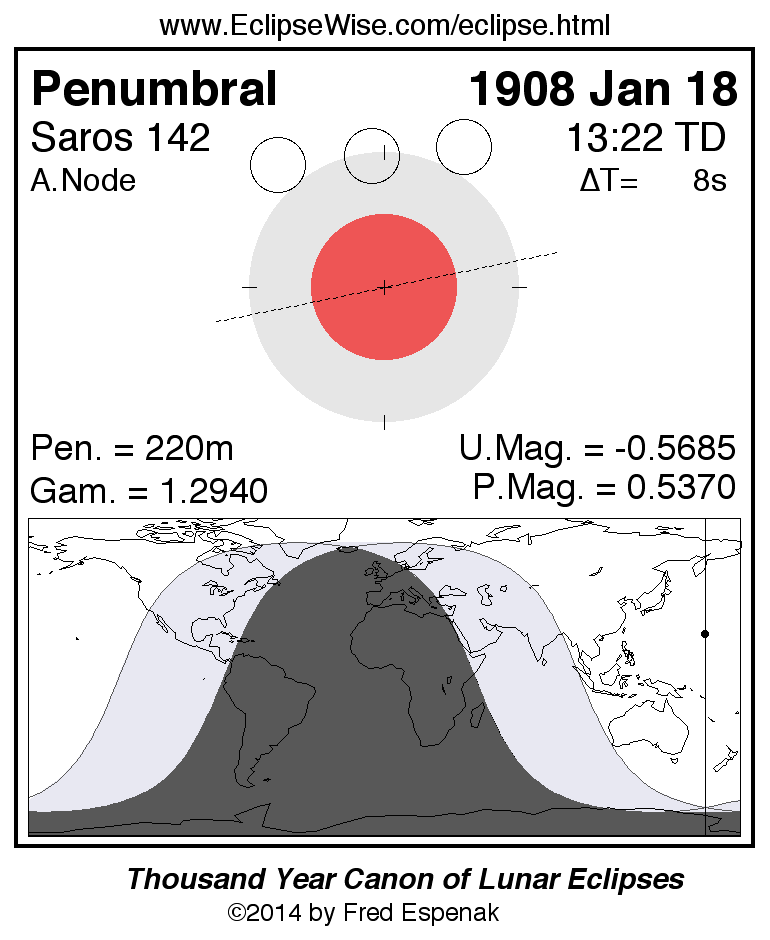 Penumbral Lunar Eclipse of 1908 Jan 18