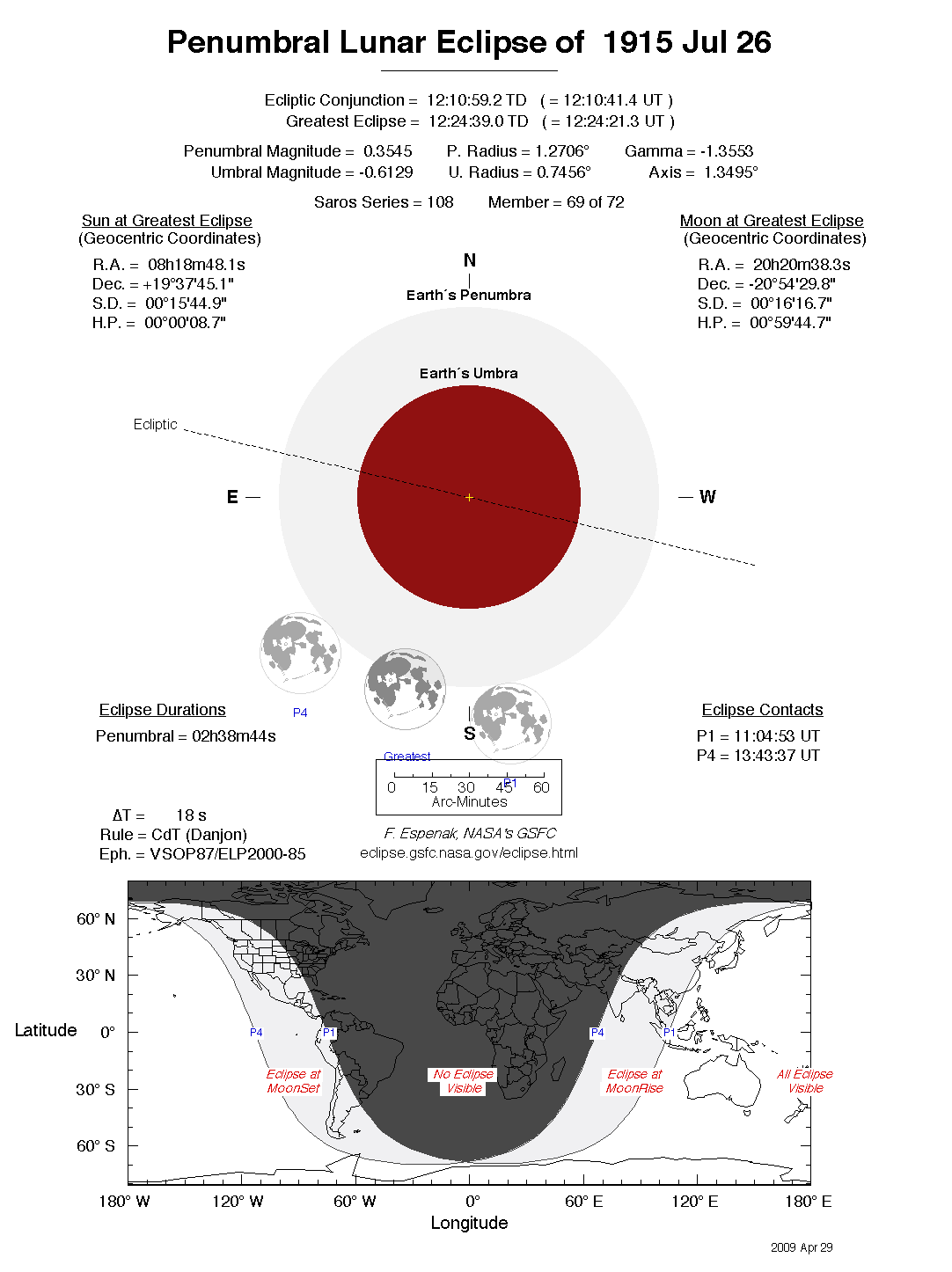 - Detailed Lunar Eclipse Figure - eclipse geometry diagram and map of eclipse visibility (Key to Figure)