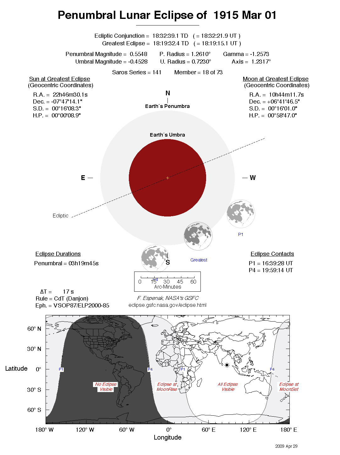 Penumbral Lunar Eclipse of 1915 Mar 01