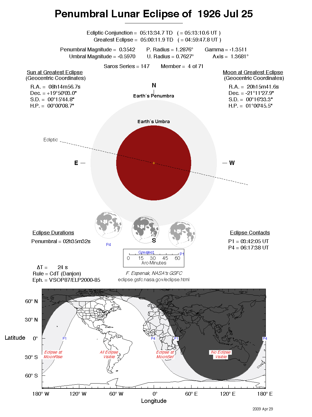 - Detailed Lunar Eclipse Figure - eclipse geometry diagram and map of eclipse visibility (Key to Figure)