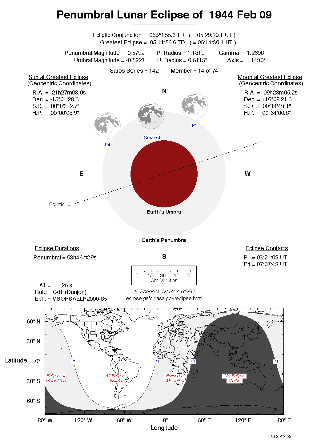 The tables below contain detailed predictions and additional information on the Penumbral Lunar Eclipse of 1944 Feb 09 .