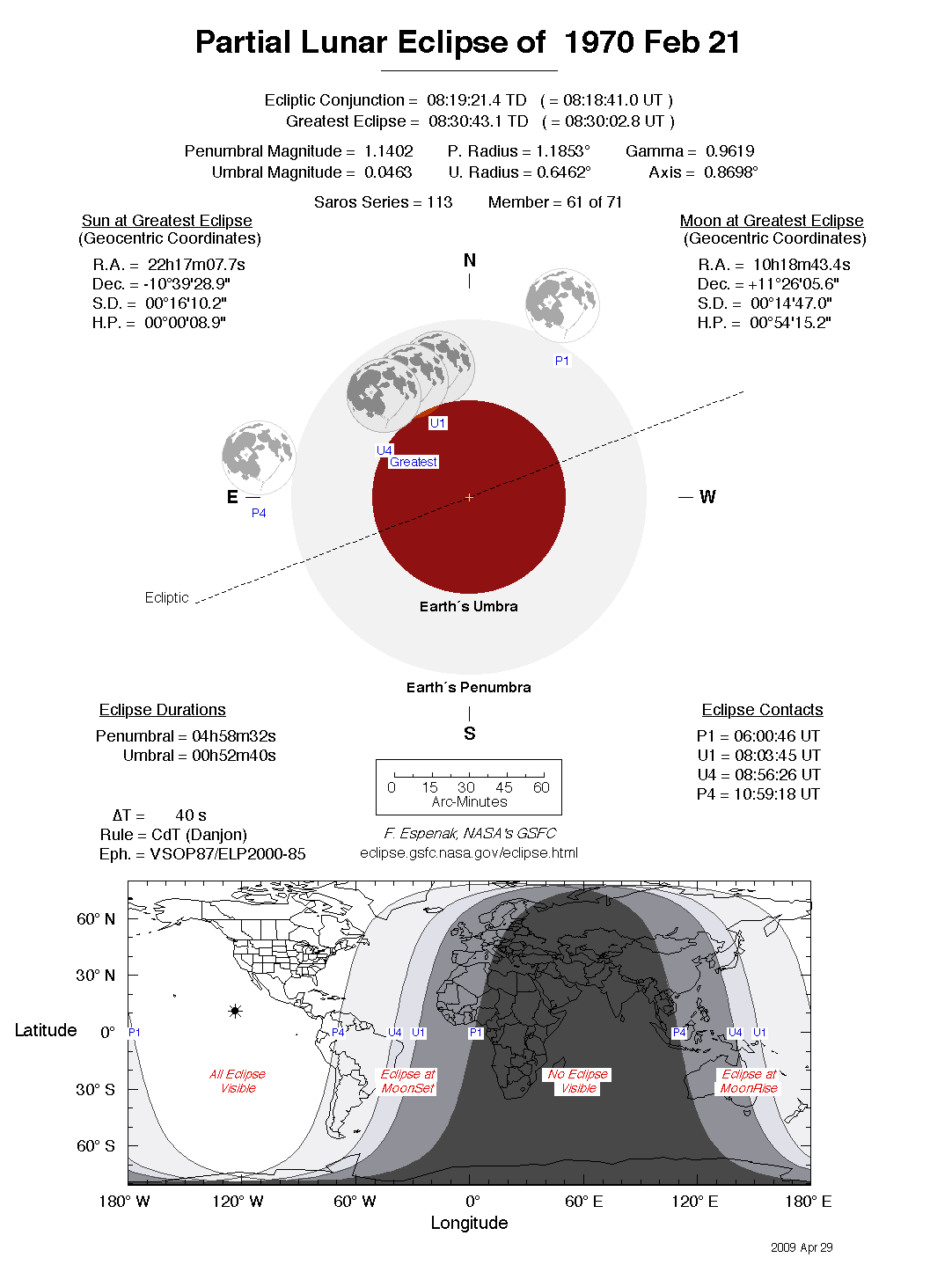 - Detailed Lunar Eclipse Figure - eclipse geometry diagram and map of eclipse visibility (Key to Figure)