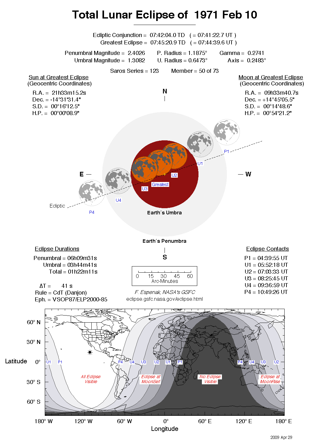- Detailed Lunar Eclipse Figure - eclipse geometry diagram and map of eclipse visibility (Key to Figure)
