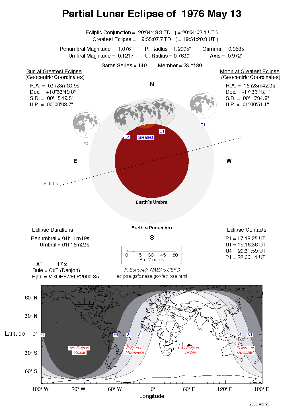 The tables below contain detailed predictions and additional information on the Partial Lunar Eclipse of 1976 May 13 .