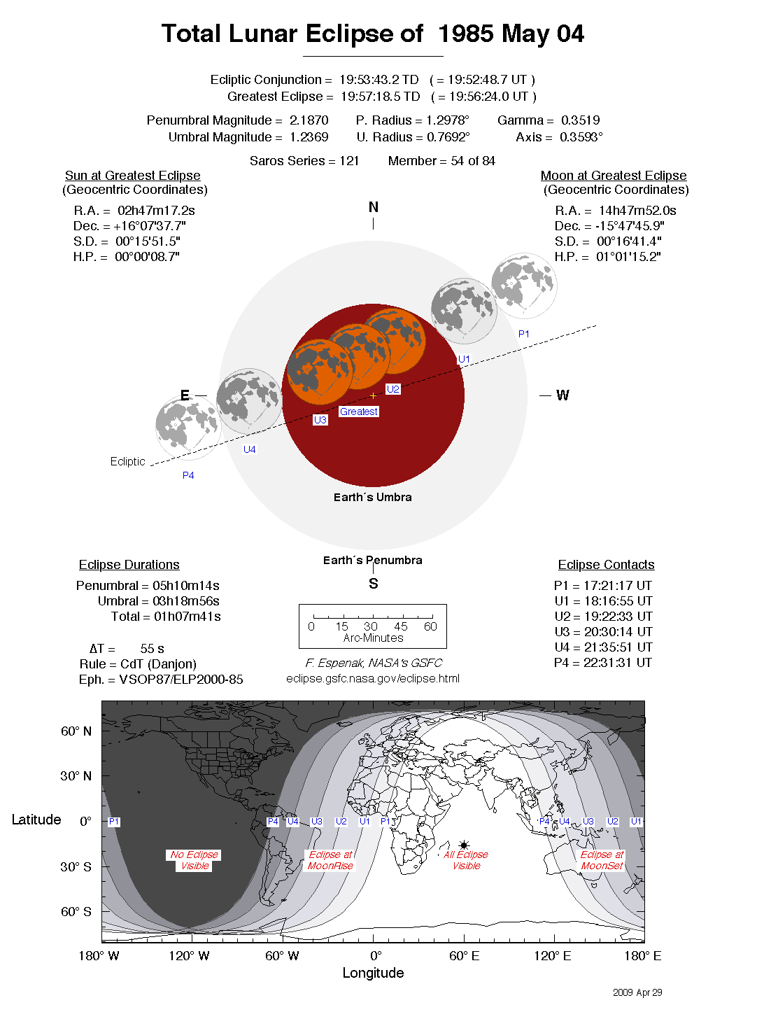 - Detailed Lunar Eclipse Figure - eclipse geometry diagram and map of eclipse visibility (Key to Figure)
