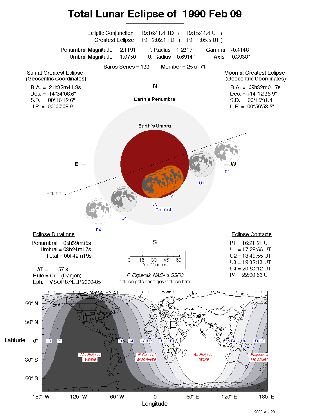 - Detailed Lunar Eclipse Figure - eclipse geometry diagram and map of eclipse visibility (Key to Figure)