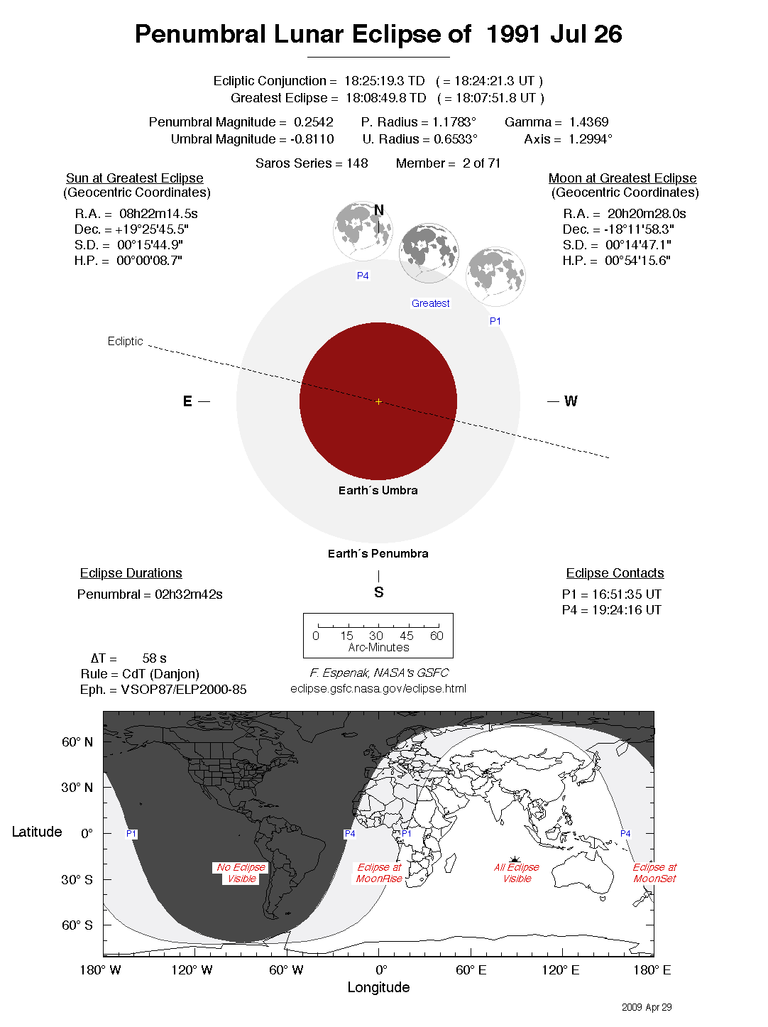 - Detailed Lunar Eclipse Figure - eclipse geometry diagram and map of eclipse visibility (Key to Figure)