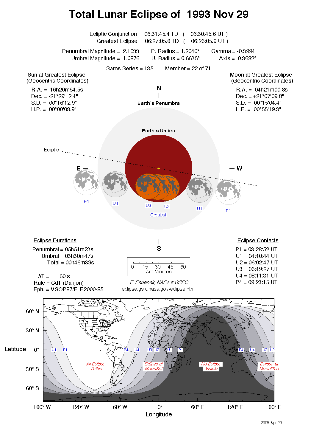 - Detailed Lunar Eclipse Figure - eclipse geometry diagram and map of eclipse visibility (Key to Figure)
