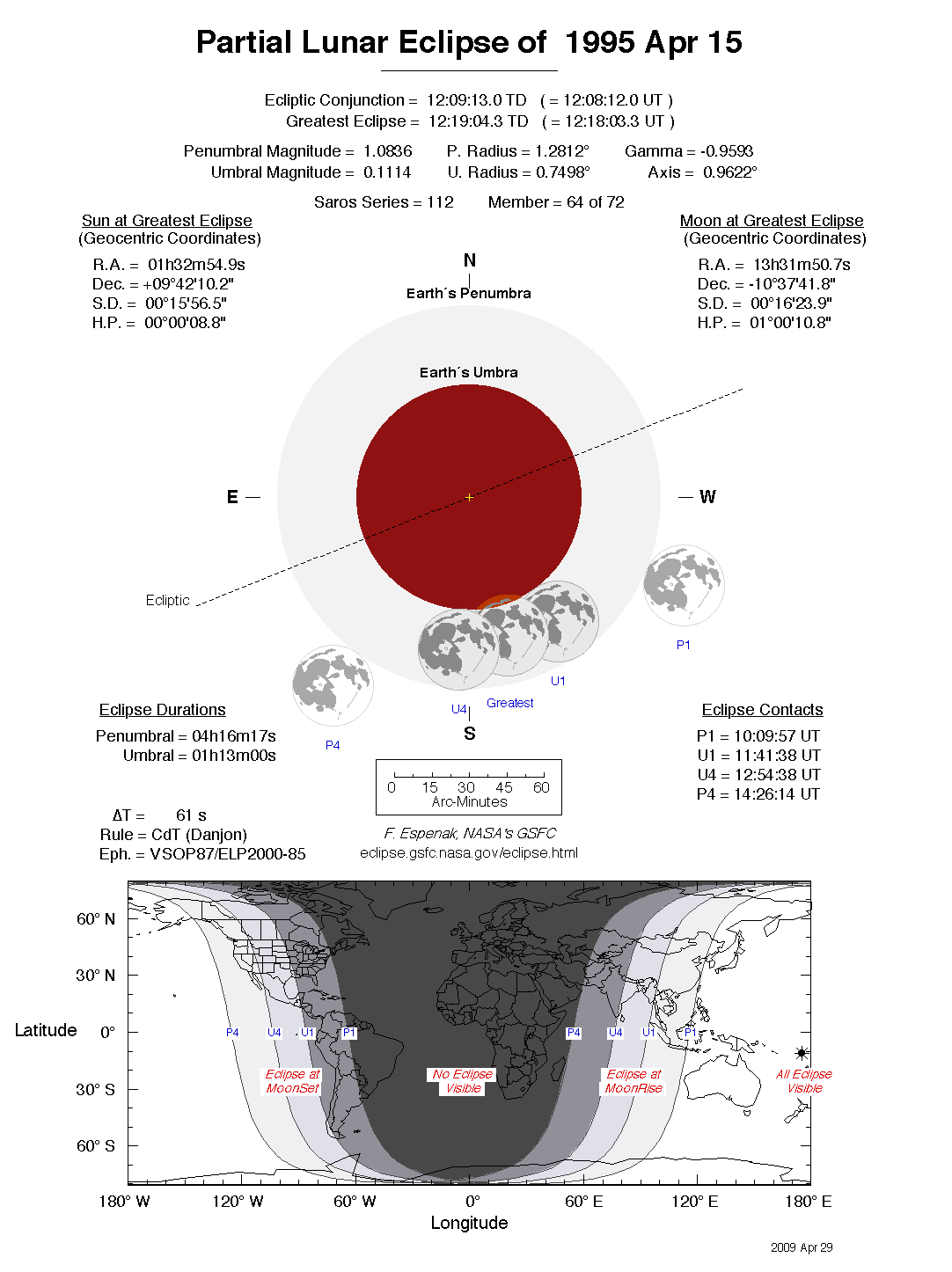 - Detailed Lunar Eclipse Figure - eclipse geometry diagram and map of eclipse visibility (Key to Figure)