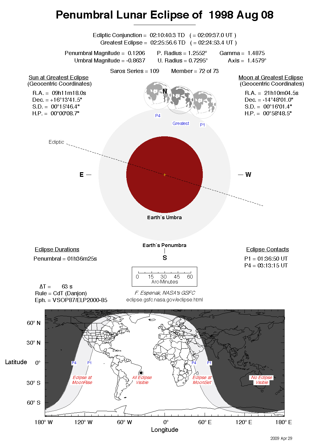 - Detailed Lunar Eclipse Figure - eclipse geometry diagram and map of eclipse visibility (Key to Figure)