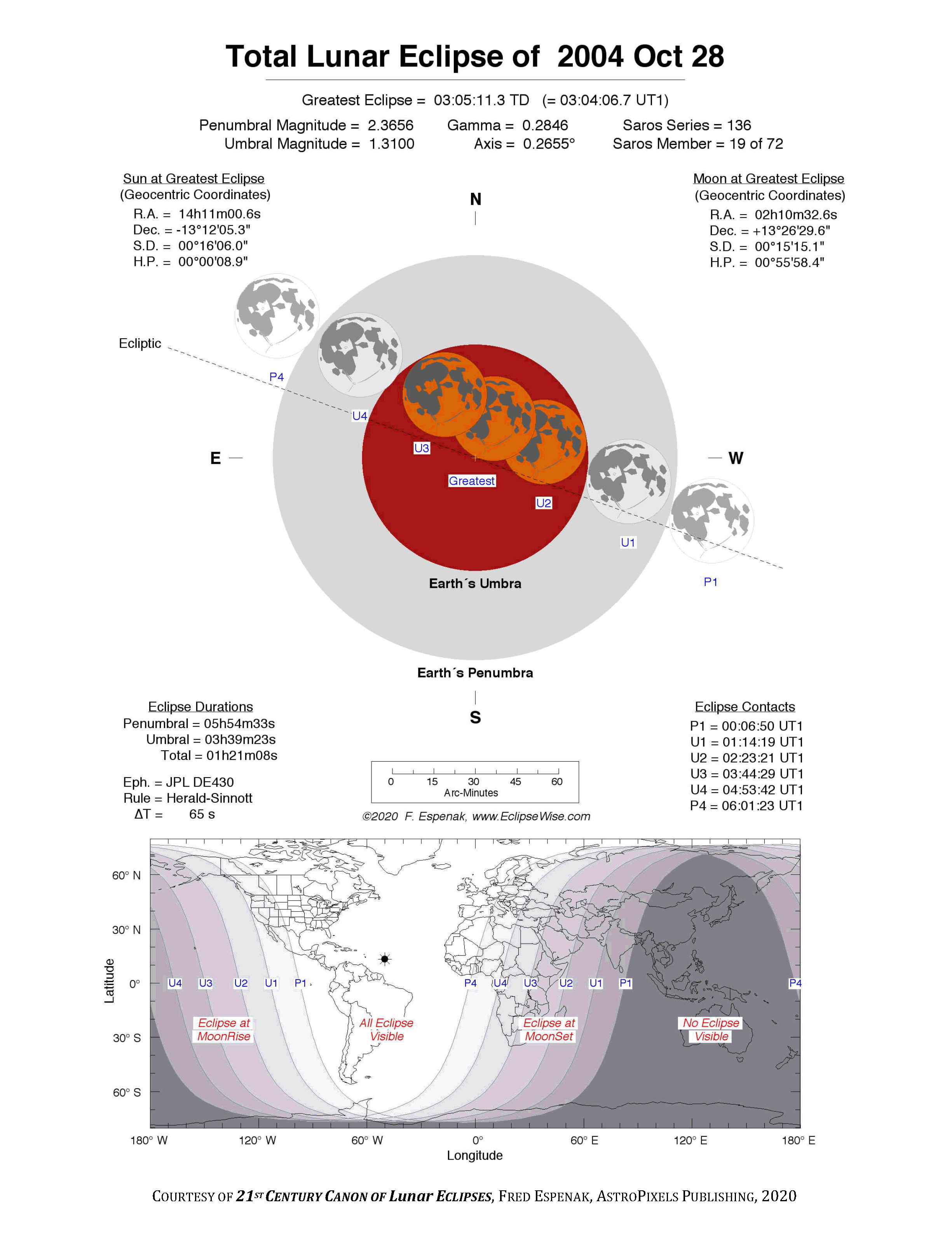 The tables below contain detailed predictions and additional information on the Total Lunar Eclipse of 2004 Oct 28 .
