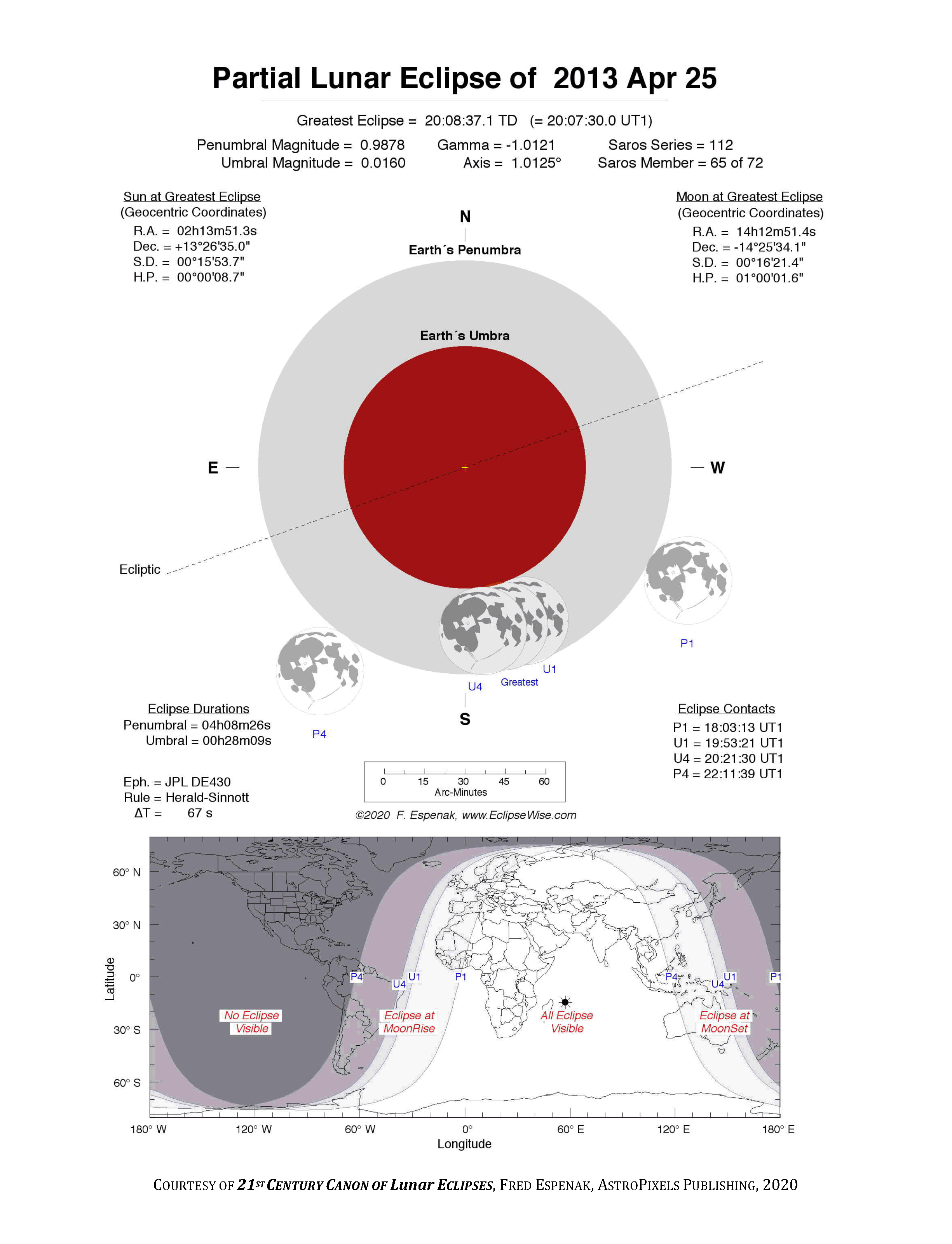 - Detailed Lunar Eclipse Figure - eclipse geometry diagram and map of eclipse visibility (Key to Figure)