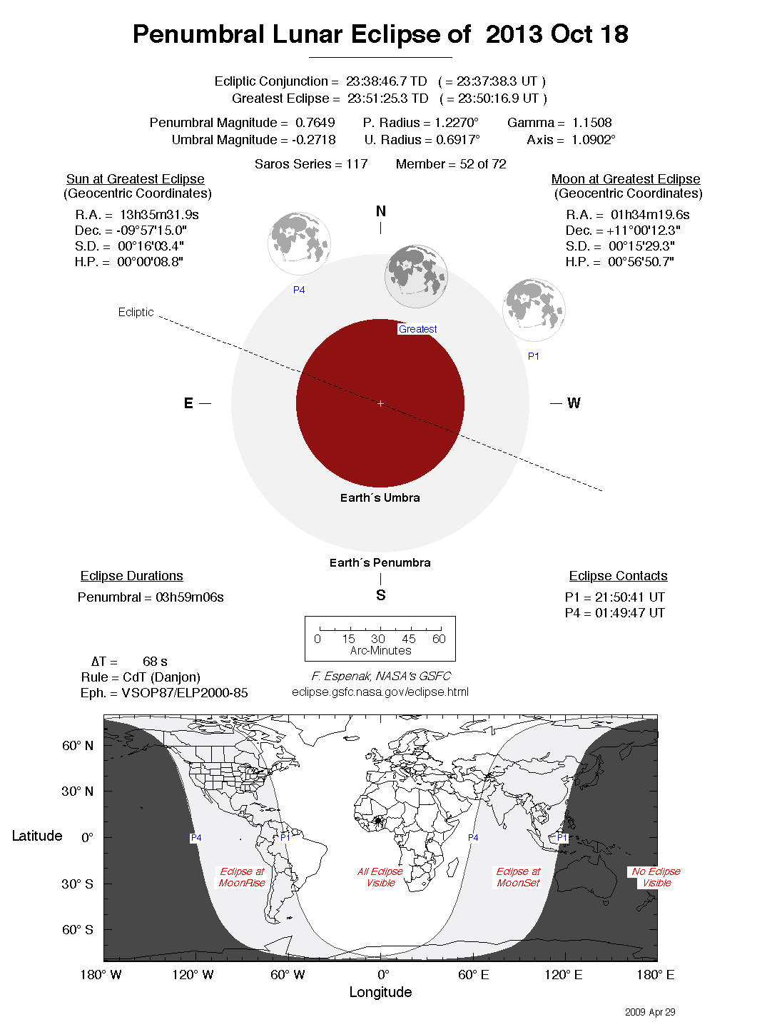 - Detailed Lunar Eclipse Figure - eclipse geometry diagram and map of eclipse visibility (Key to Figure)
