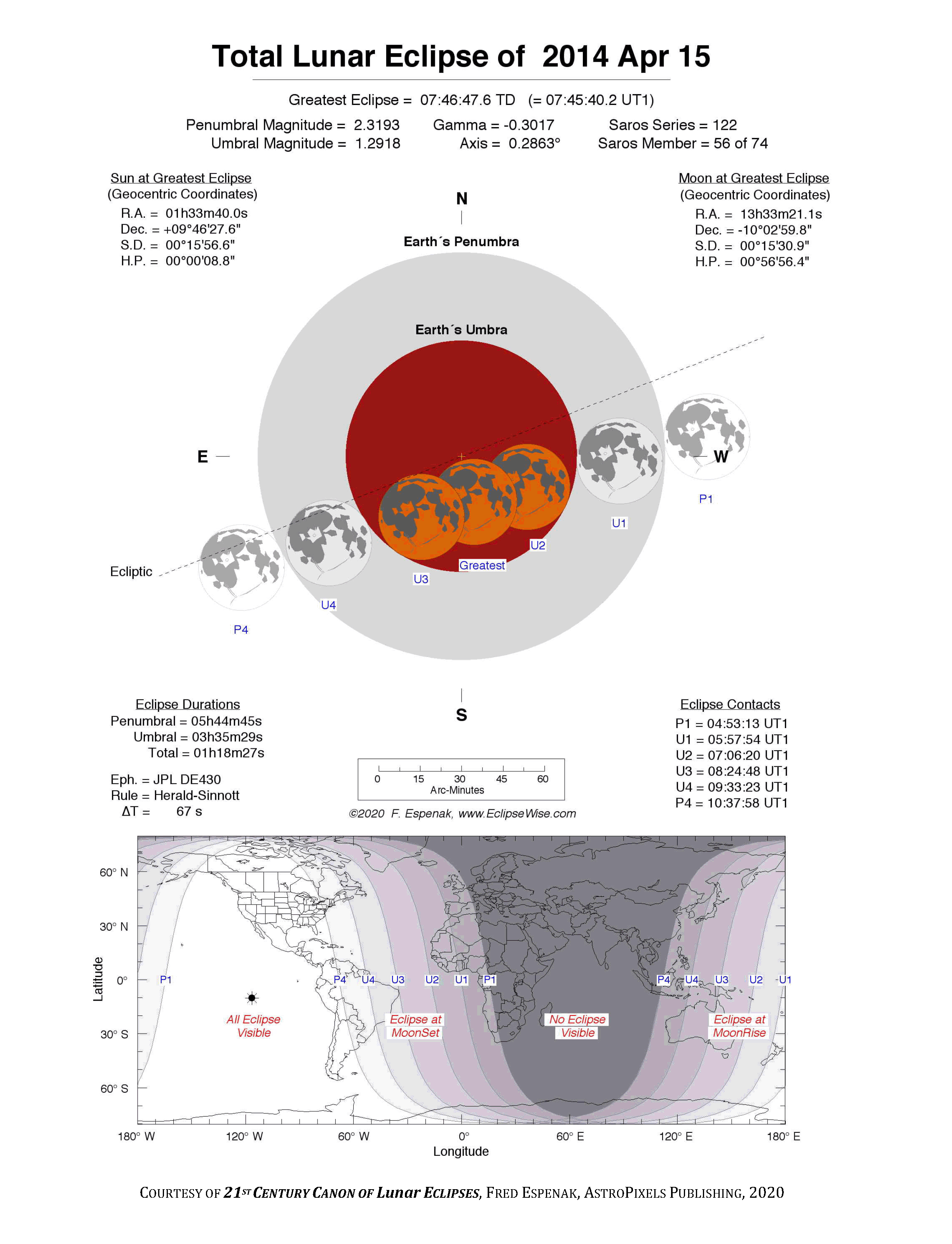 The Total Lunar Eclipse of 2014 Apr 15 is visible from the following geographic regions: