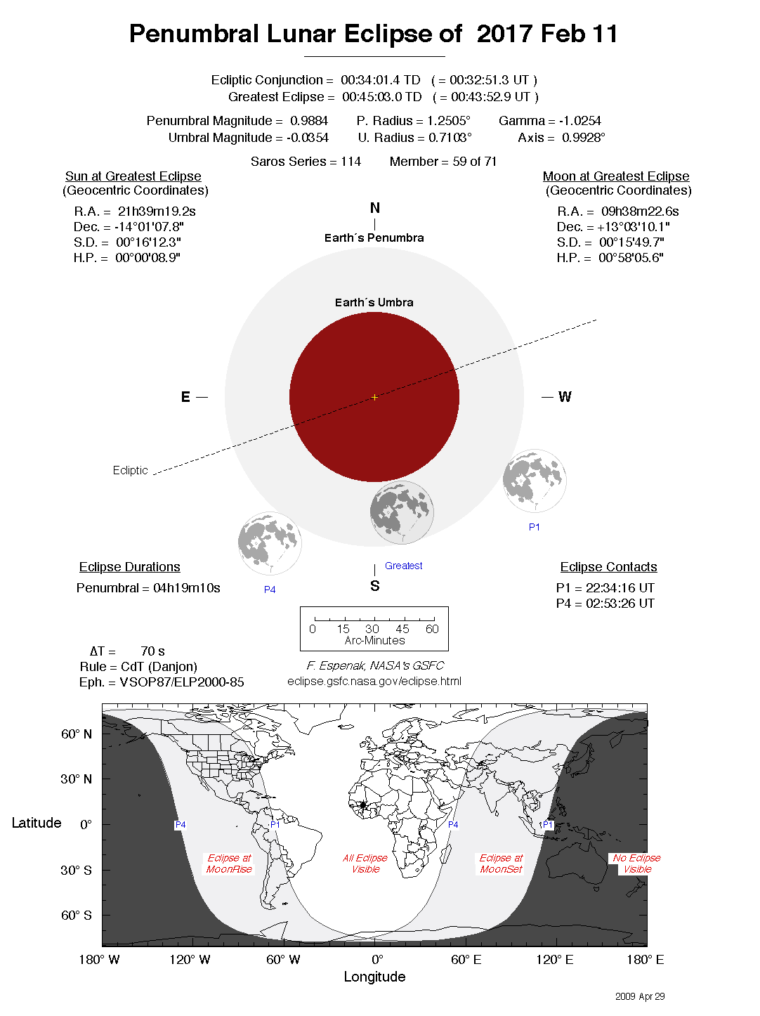 - Detailed Lunar Eclipse Figure - eclipse geometry diagram and map of eclipse visibility (Key to Figure)