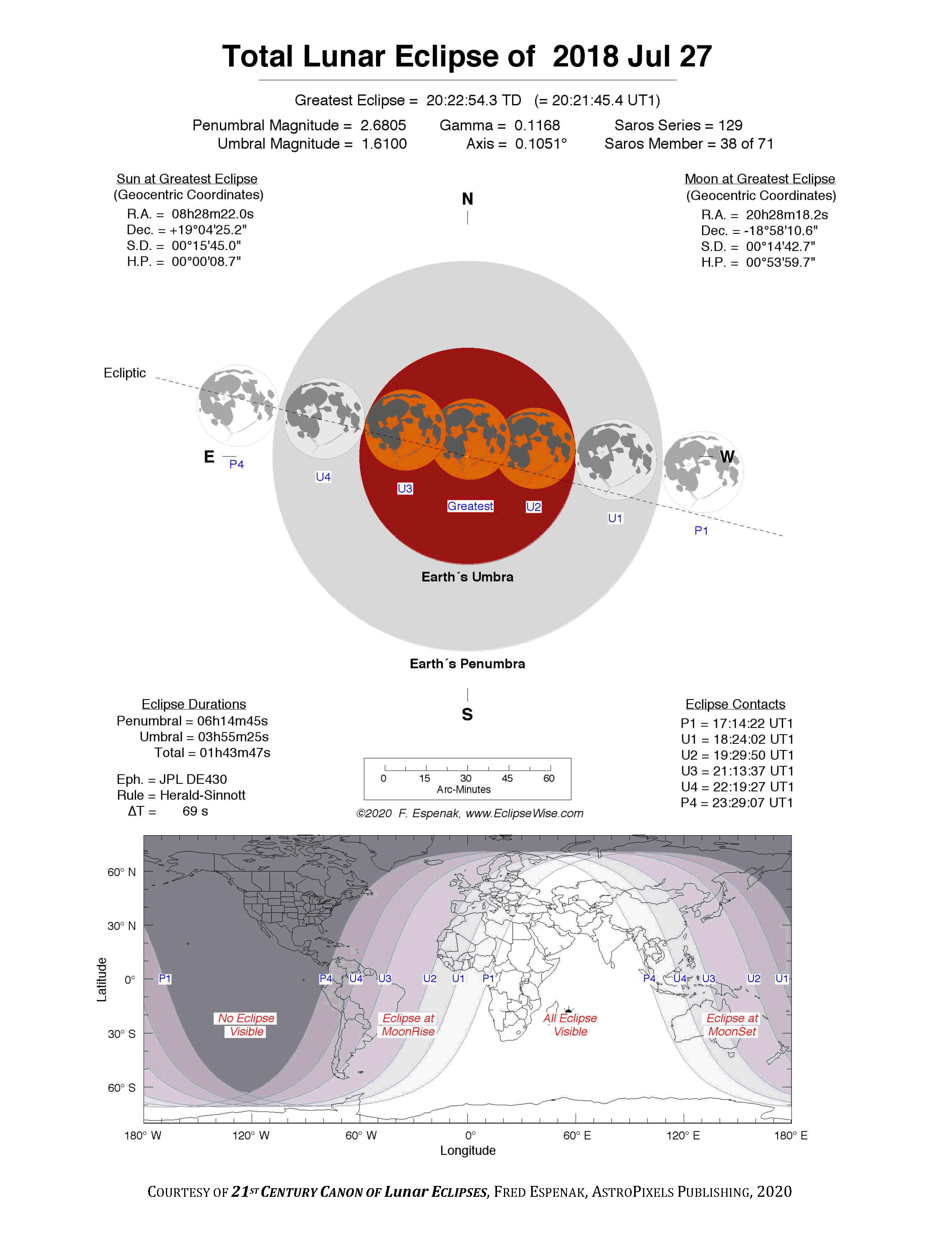 - Detailed Lunar Eclipse Figure - eclipse geometry diagram and map of eclipse visibility (Key to Figure)