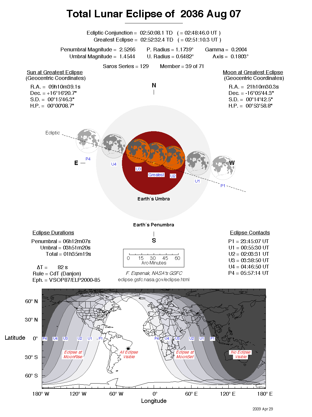 - Detailed Lunar Eclipse Figure - eclipse geometry diagram and map of eclipse visibility (Key to Figure)