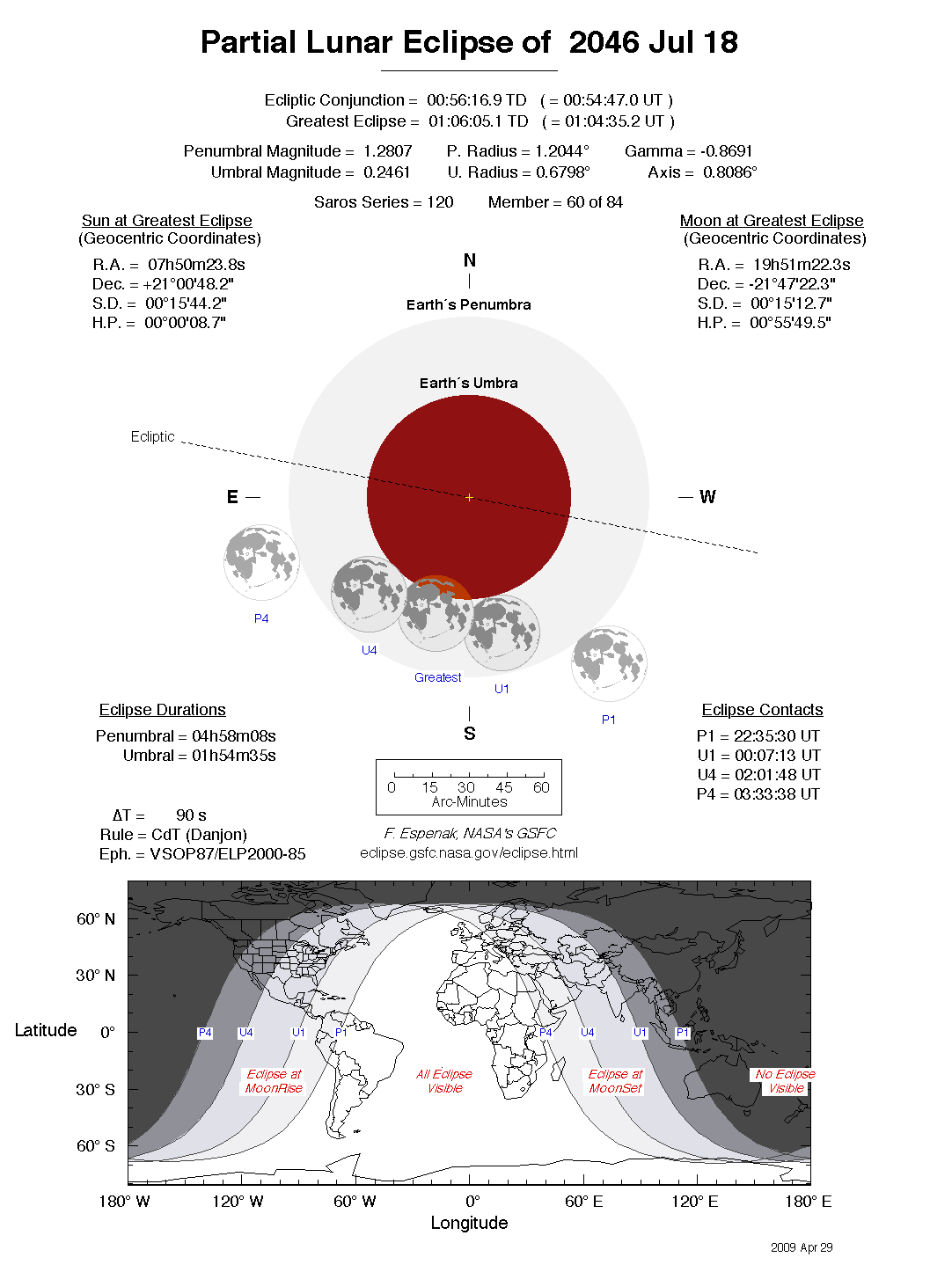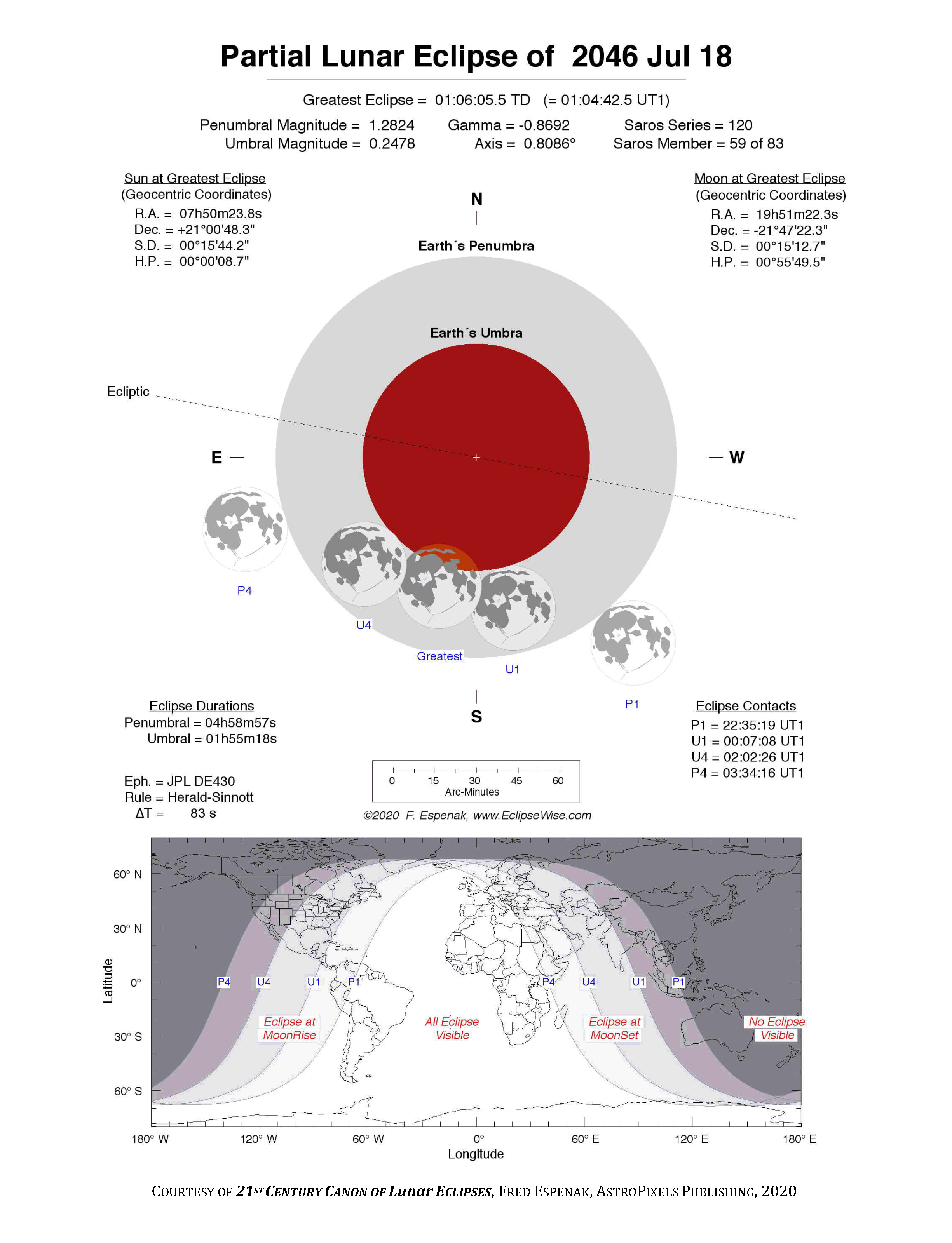 The tables below contain detailed predictions and additional information on the Partial Lunar Eclipse of 2046 Jul 18 .