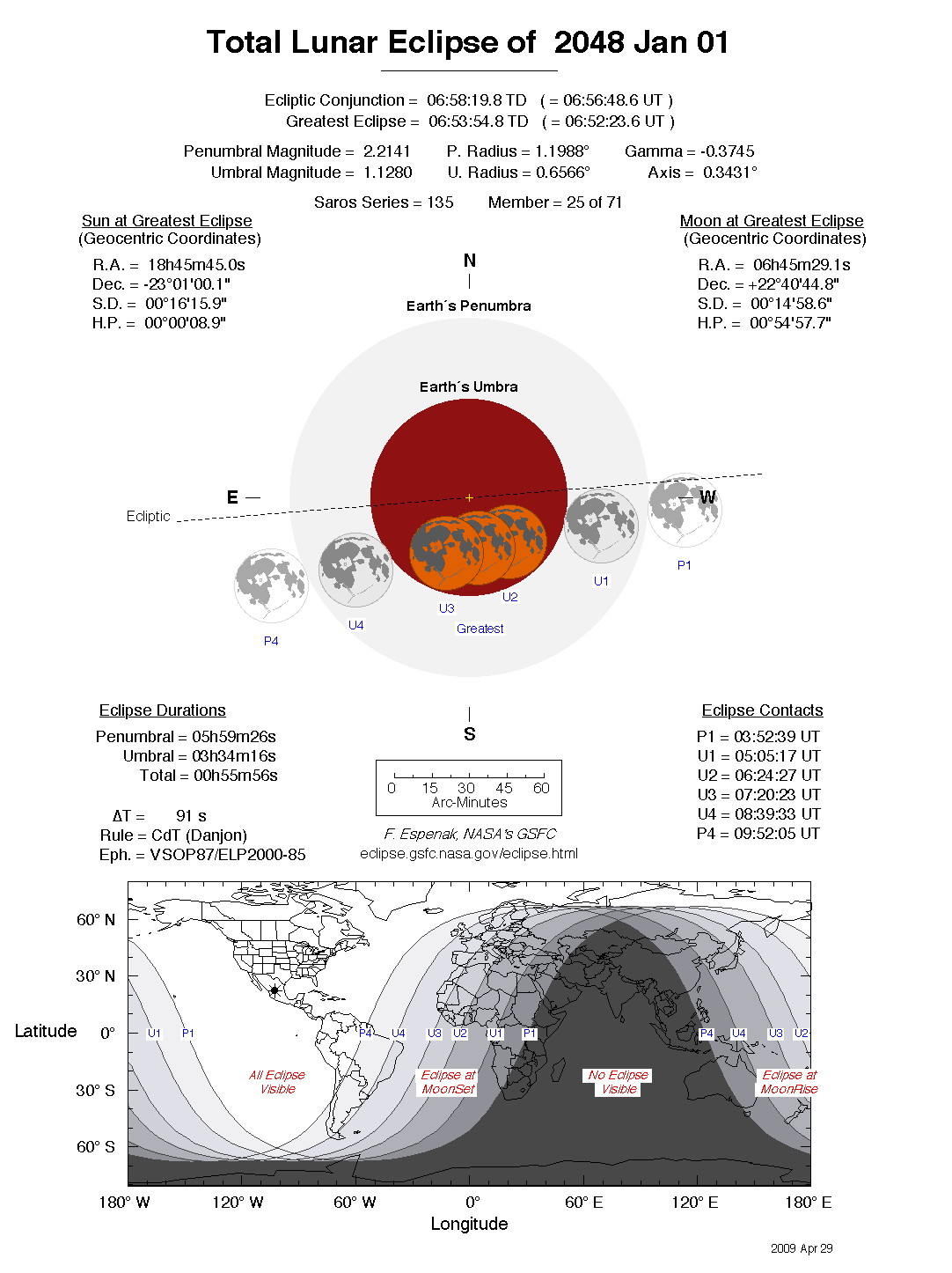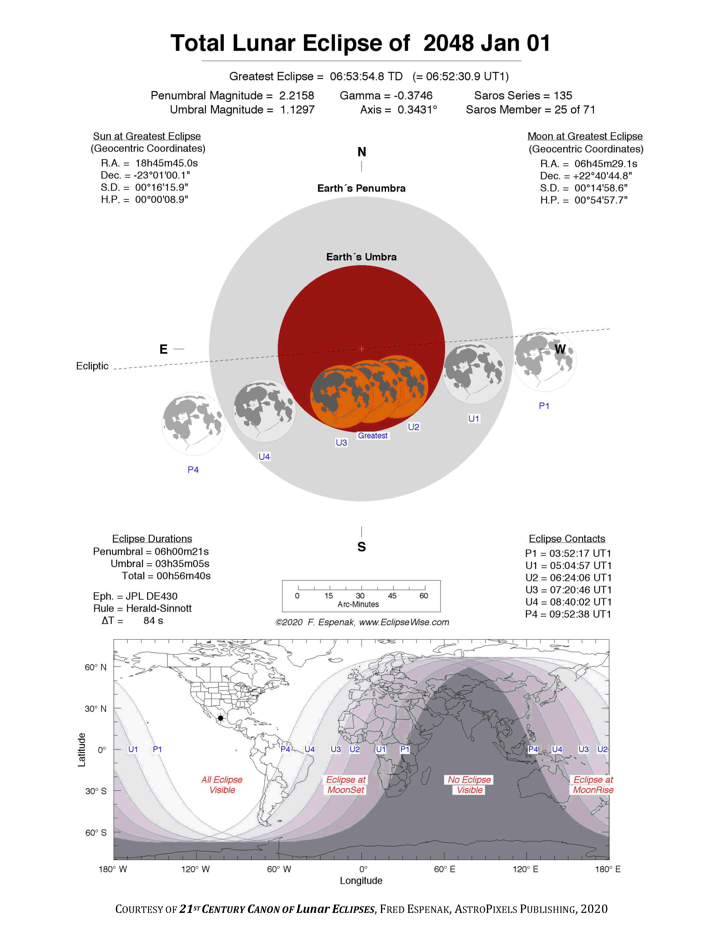 The tables below contain detailed predictions and additional information on the Total Lunar Eclipse of 2048 Jan 01 .