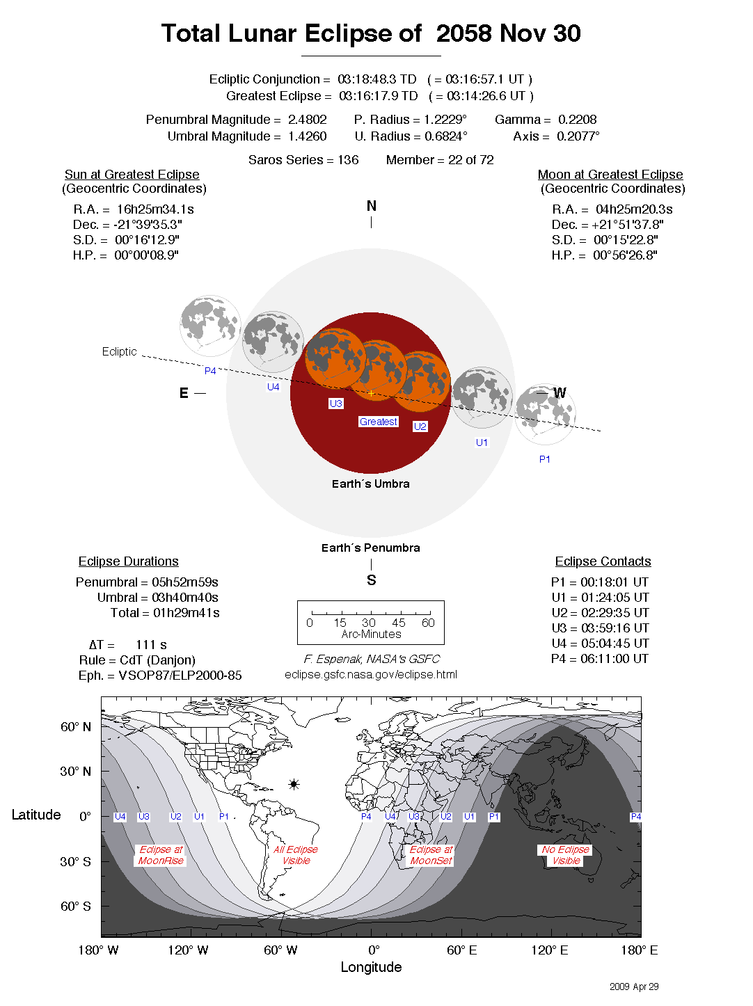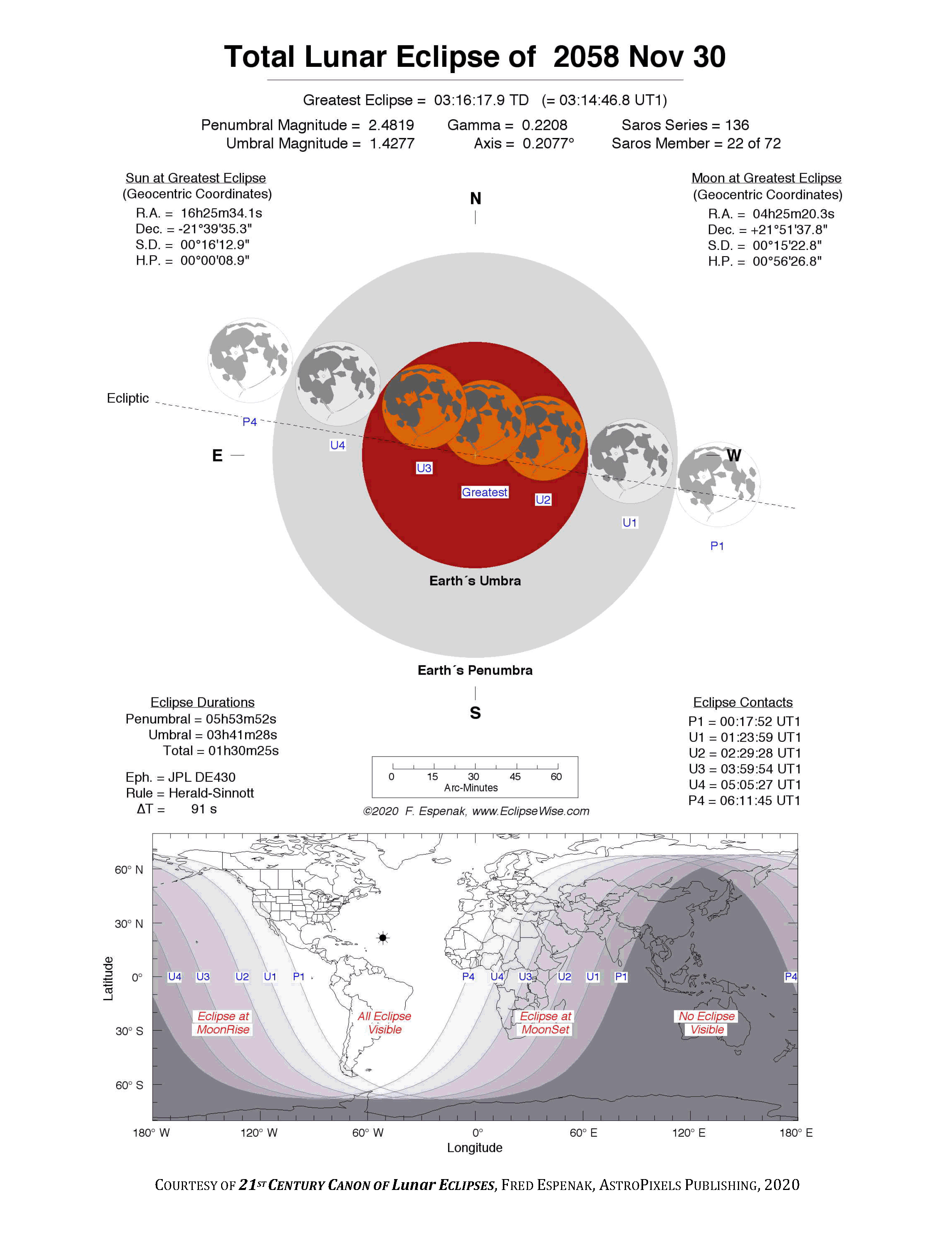 The tables below contain detailed predictions and additional information on the Total Lunar Eclipse of 2058 Nov 30 .