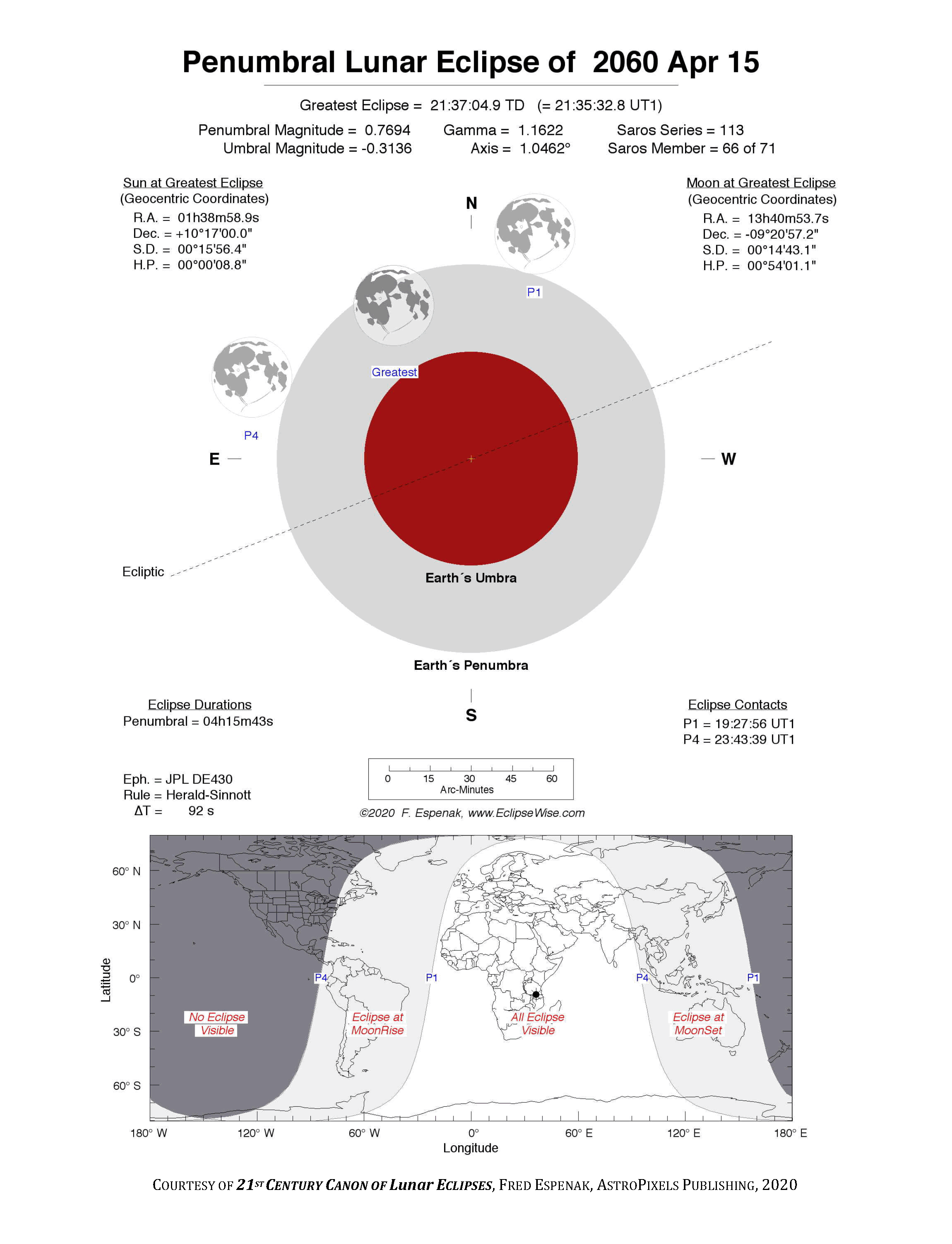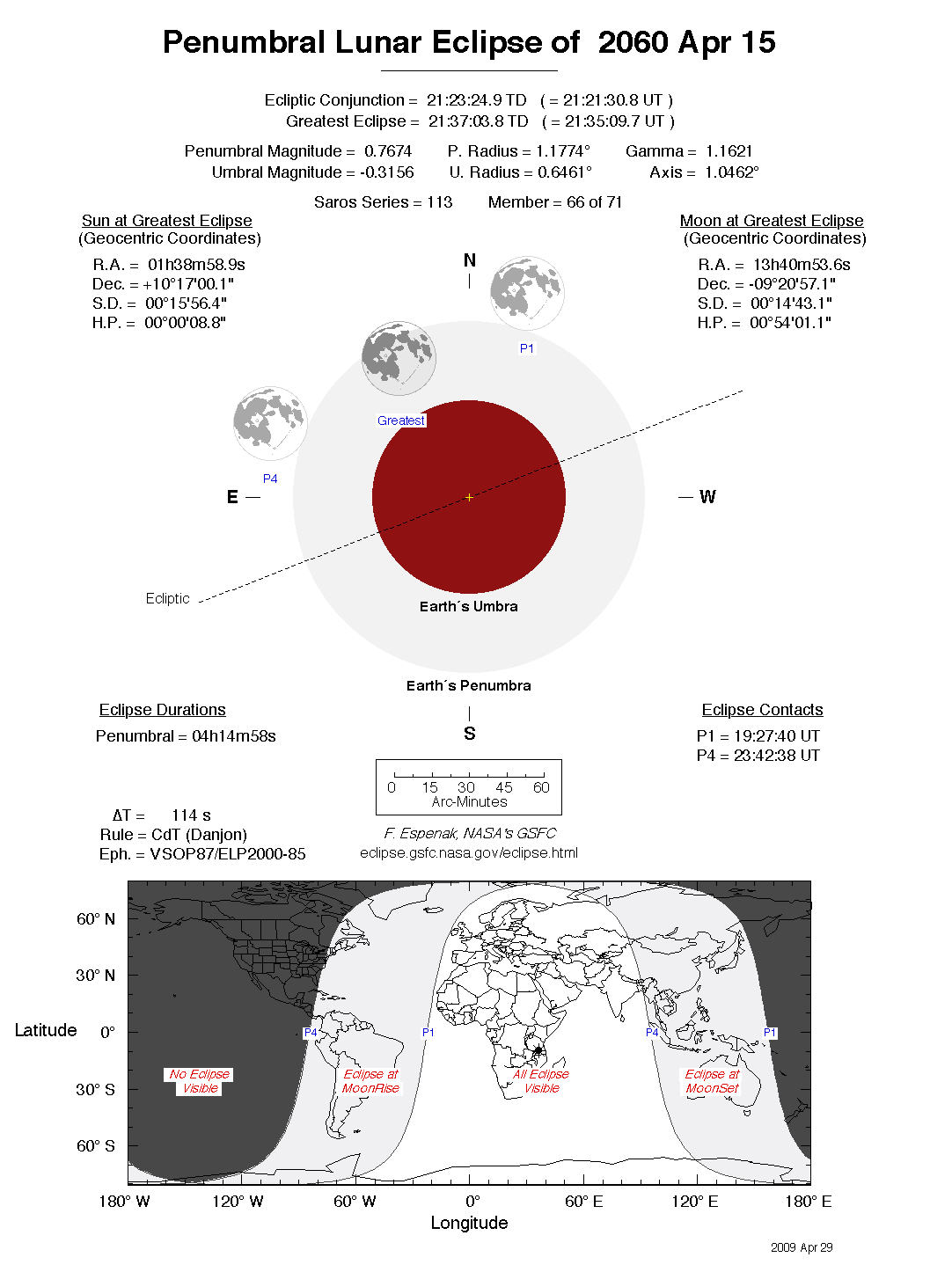 The tables below contain detailed predictions and additional information on the Penumbral Lunar Eclipse of 2060 Apr 15 .