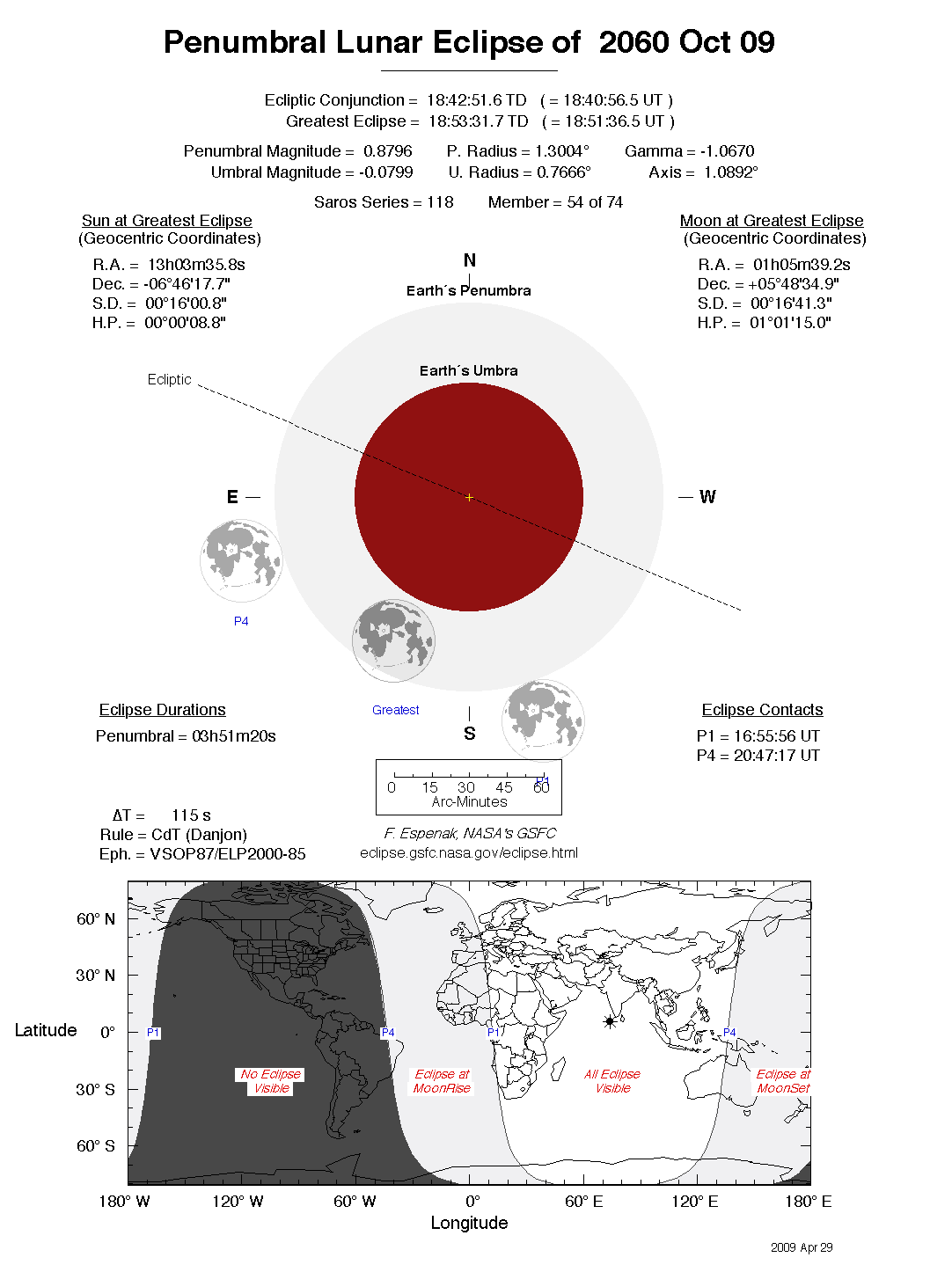 The tables below contain detailed predictions and additional information on the Penumbral Lunar Eclipse of 2060 Oct 09 .