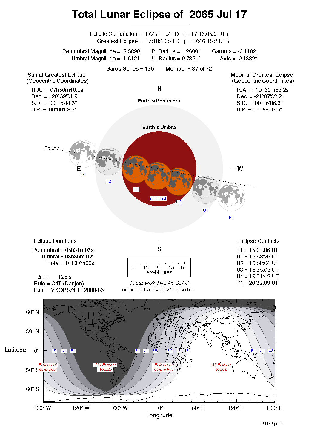 - Detailed Lunar Eclipse Figure - eclipse geometry diagram and map of eclipse visibility (Key to Figure)