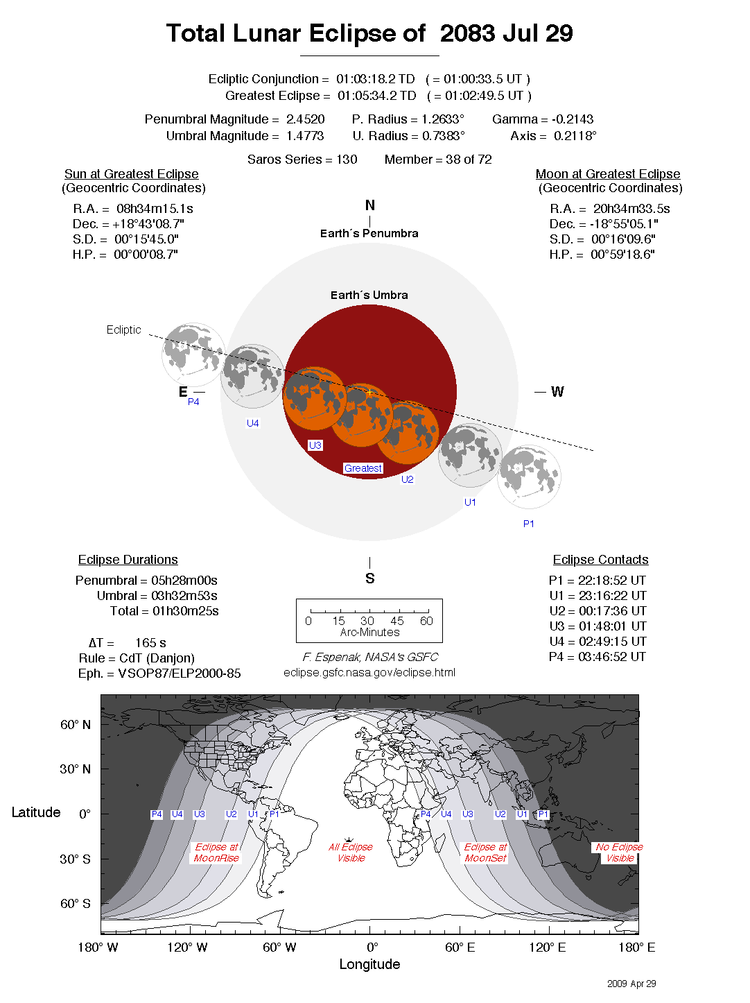 The tables below contain detailed predictions and additional information on the Total Lunar Eclipse of 2083 Jul 29 .