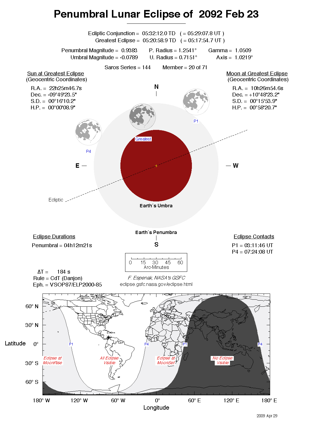 The tables below contain detailed predictions and additional information on the Penumbral Lunar Eclipse of 2092 Feb 23 .