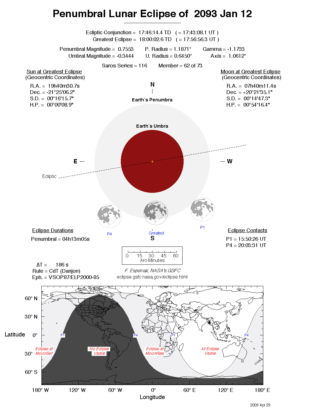 - Detailed Lunar Eclipse Figure - eclipse geometry diagram and map of eclipse visibility (Key to Figure)
