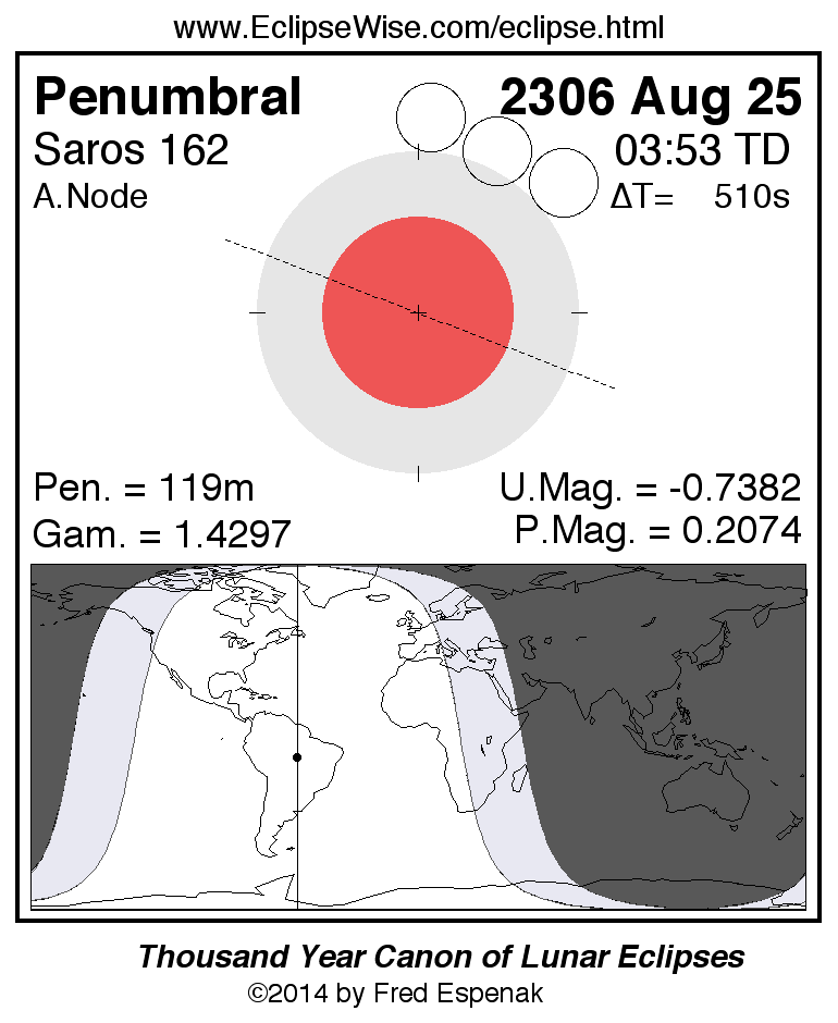 Penumbral Lunar Eclipse of 2306 Aug 25