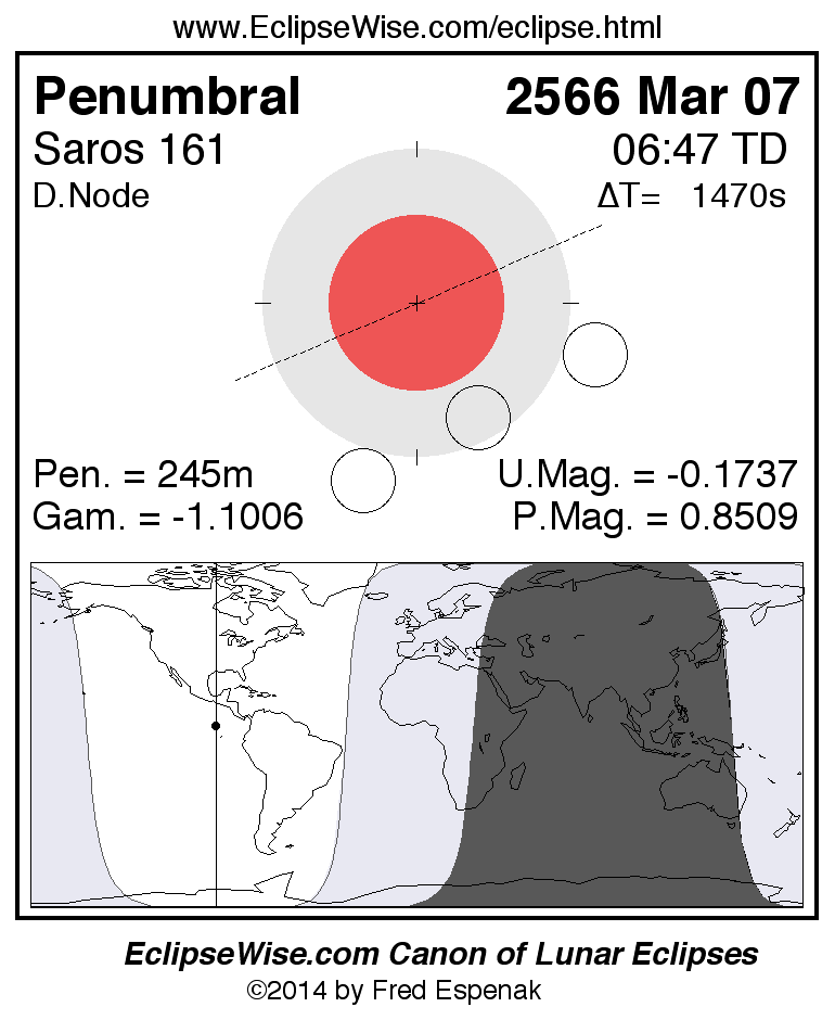 The penumbral lunar eclipse of 2566 Mar 07 is preceded two weeks earlier by a annular solar eclipse on 2566 Feb 21.