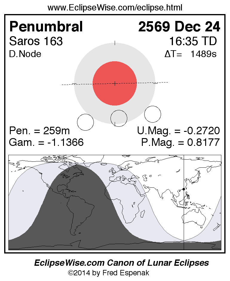 The penumbral lunar eclipse of 2569 Dec 24 is preceded two weeks earlier by a total solar eclipse on 2569 Dec 09.