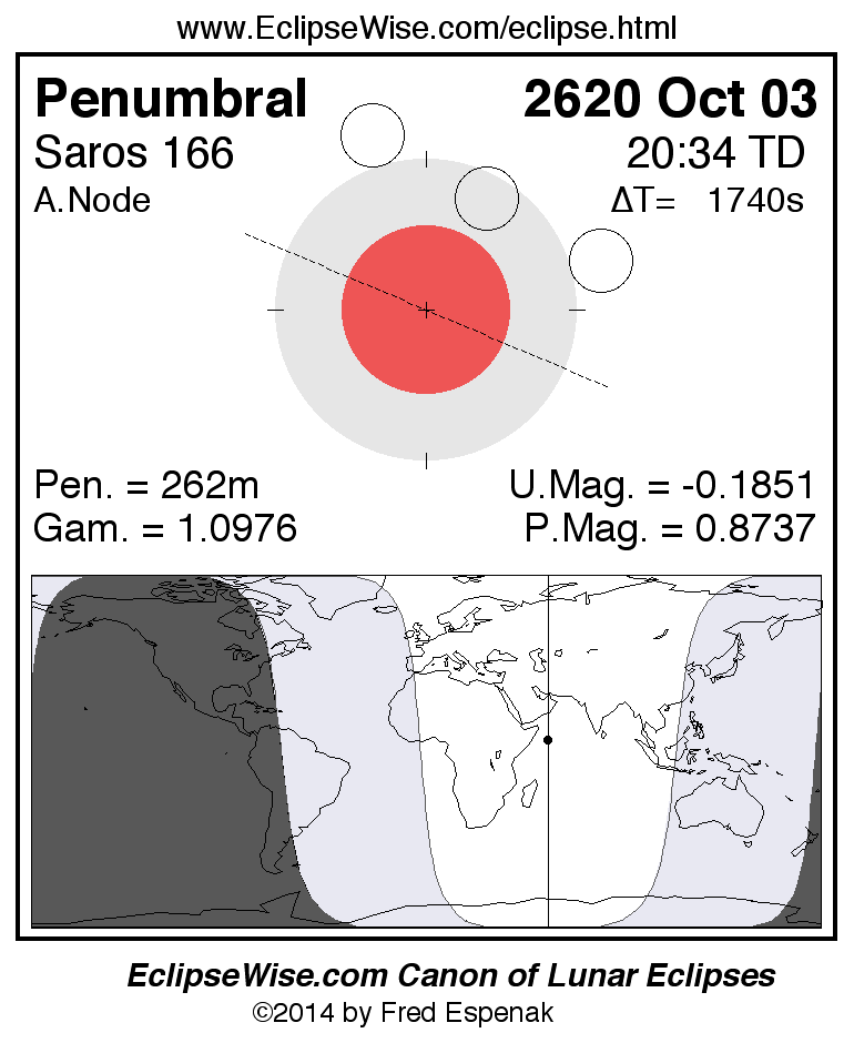 The penumbral lunar eclipse of 2620 Oct 03 is preceded two weeks earlier by a total solar eclipse on 2620 Sep 18.