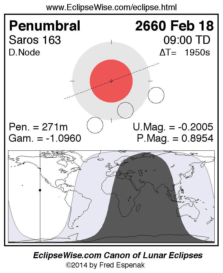 The penumbral lunar eclipse of 2660 Feb 18 is preceded two weeks earlier by a total solar eclipse on 2660 Feb 03.