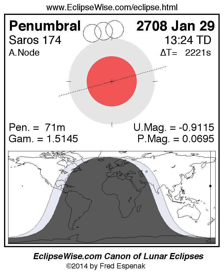 Penumbral Lunar Eclipse of 2708 Jan 29