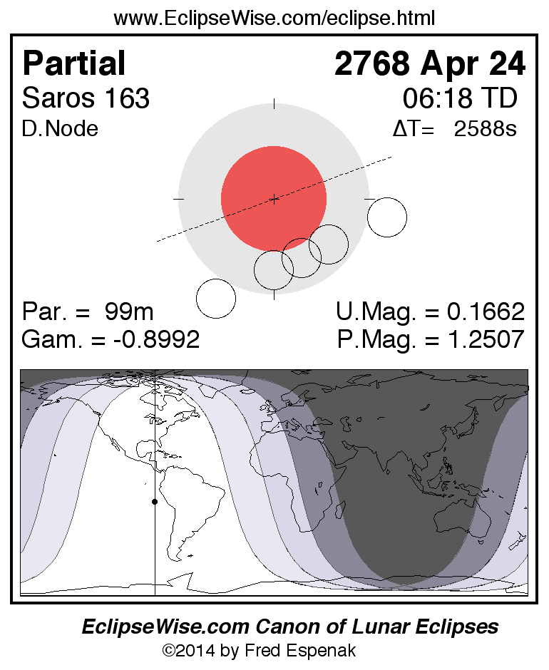 The partial lunar eclipse of 2768 Apr 24 is preceded two weeks earlier by a total solar eclipse on 2768 Apr 09.